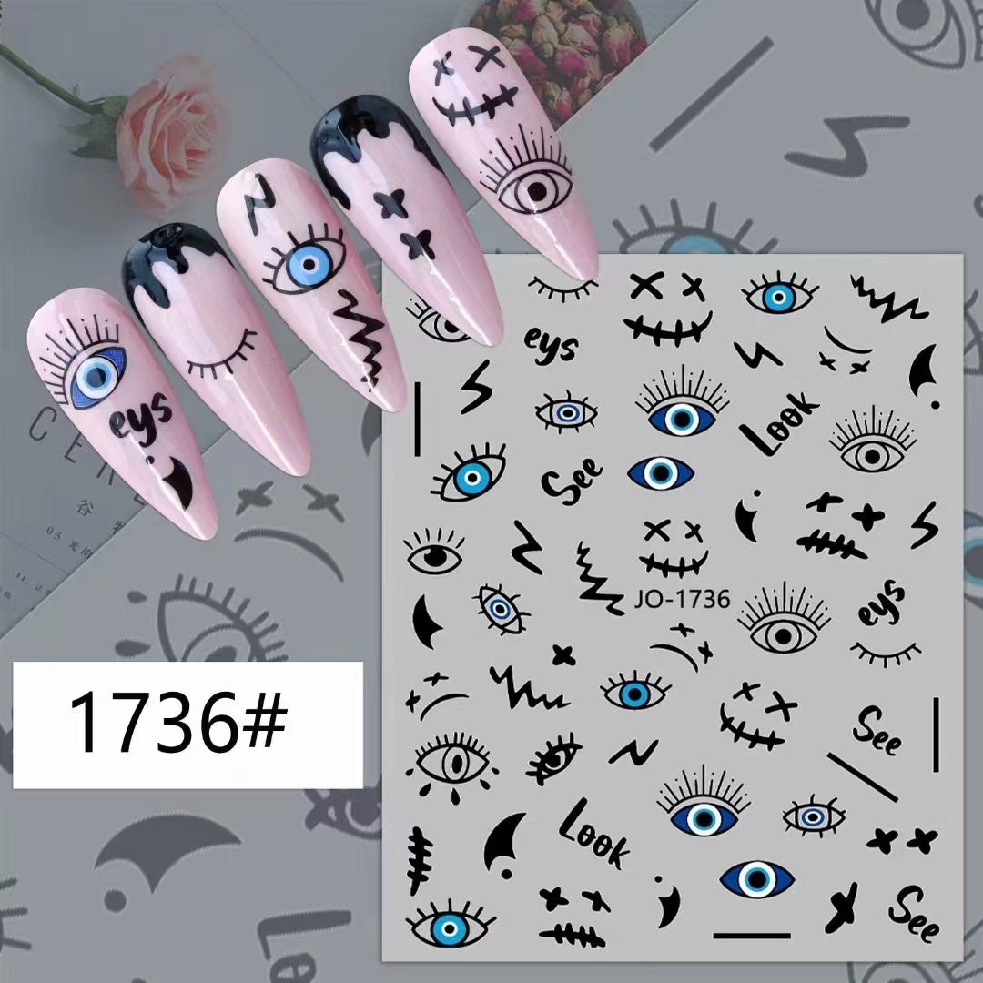 JO1732-1737 심플 인 스타일 블루 블랙 아이 달콤한 멋진 소녀 요소 네일 아트 네일 접착제 데칼 네일
