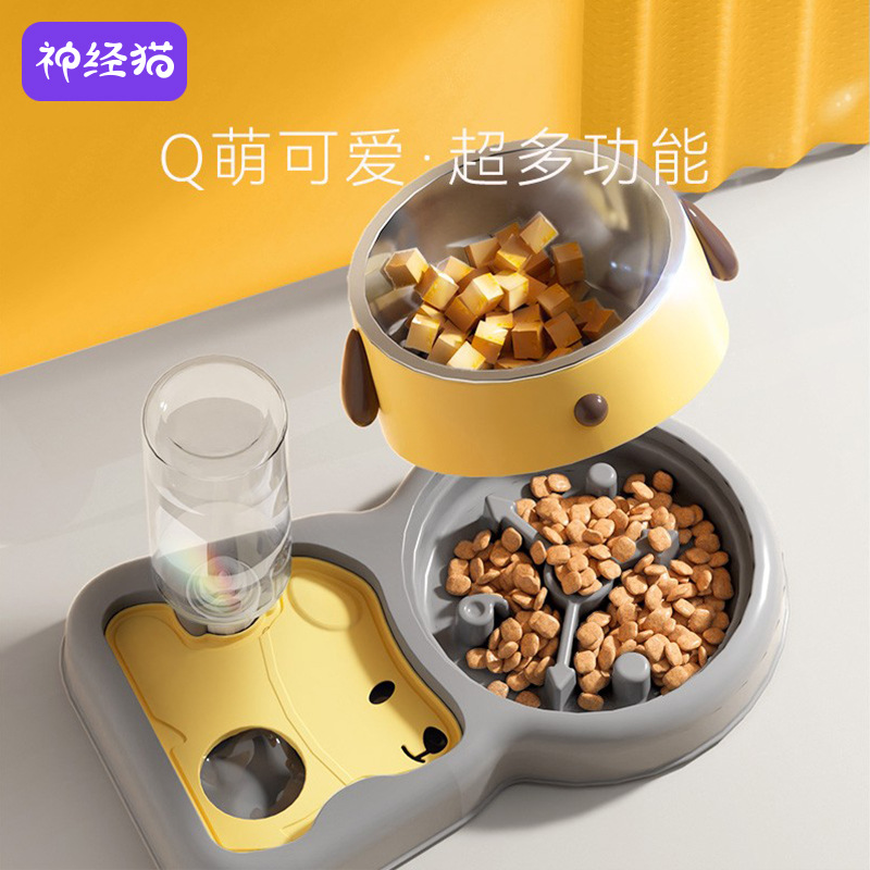 애완 동물 그릇 자동 식수 경추 보호 고양이 그릇 전복 방지 소형 개 개 슬로우 푸드 그릇 식수 장치 통합 개 그릇