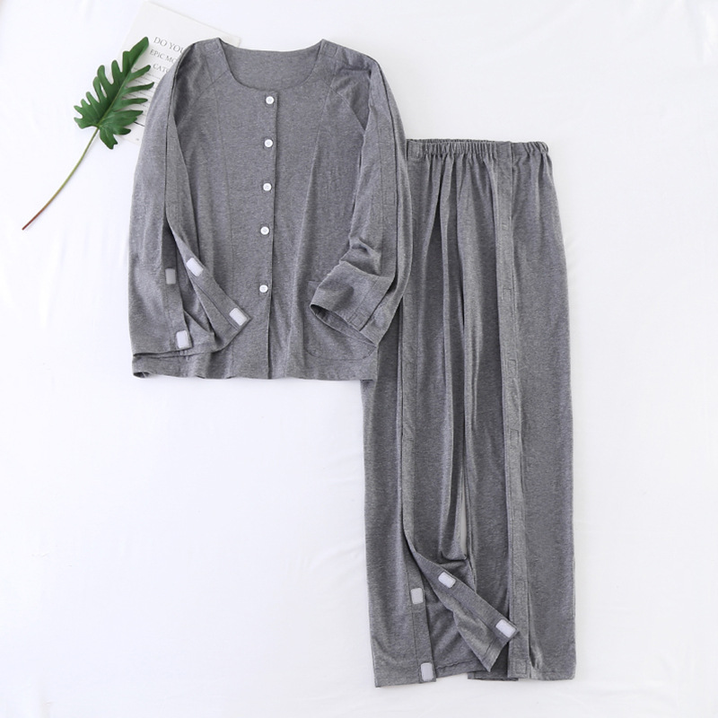 사계절 원피스 순면 수유복 침대 골절 노인을 위한 홈 의료 의류 착용 및 벗기 쉬운 의류 홈 의류