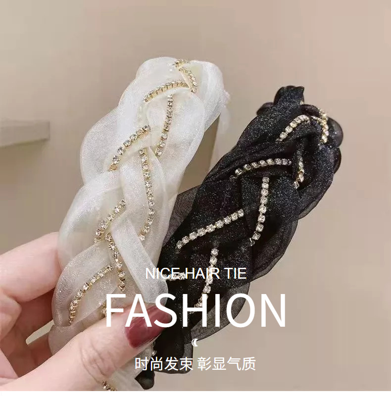 한국 동대문 뉴 트위스트 헤어밴드 가벼운 럭셔리 다이아몬드 와이드 사이드 모든 매치 고급 헤어 액세서리 얼굴 세척 미끄럼 방지 머리띠스토어 가기