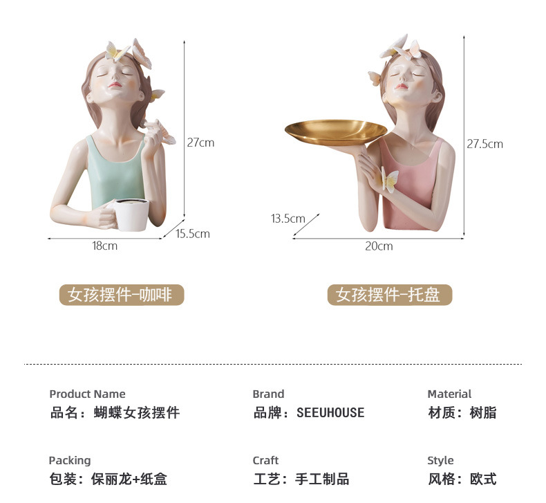크리 에이 티브 커피 찾고 나비 소녀 드레서 입구 저장 상점 디스플레이 트레이 장식 장식품 도매