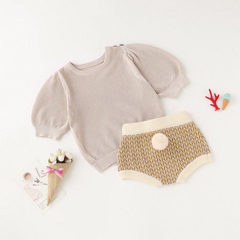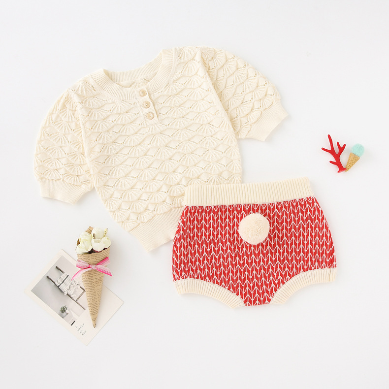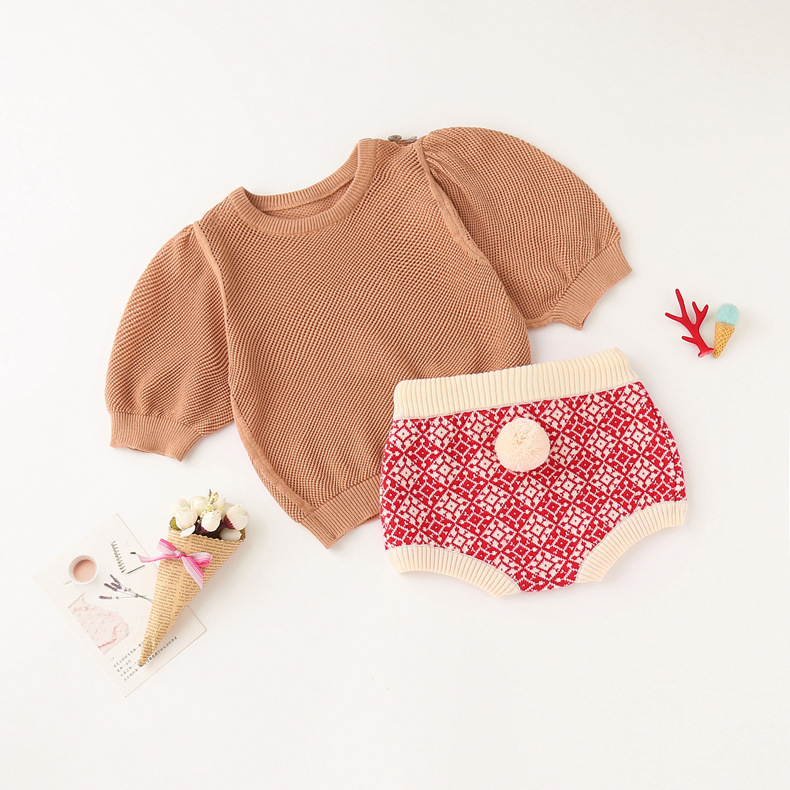 2022新款女宝宝针织短裤可爱尾巴短裤提花毛线裤韩版女童裤子秋冬