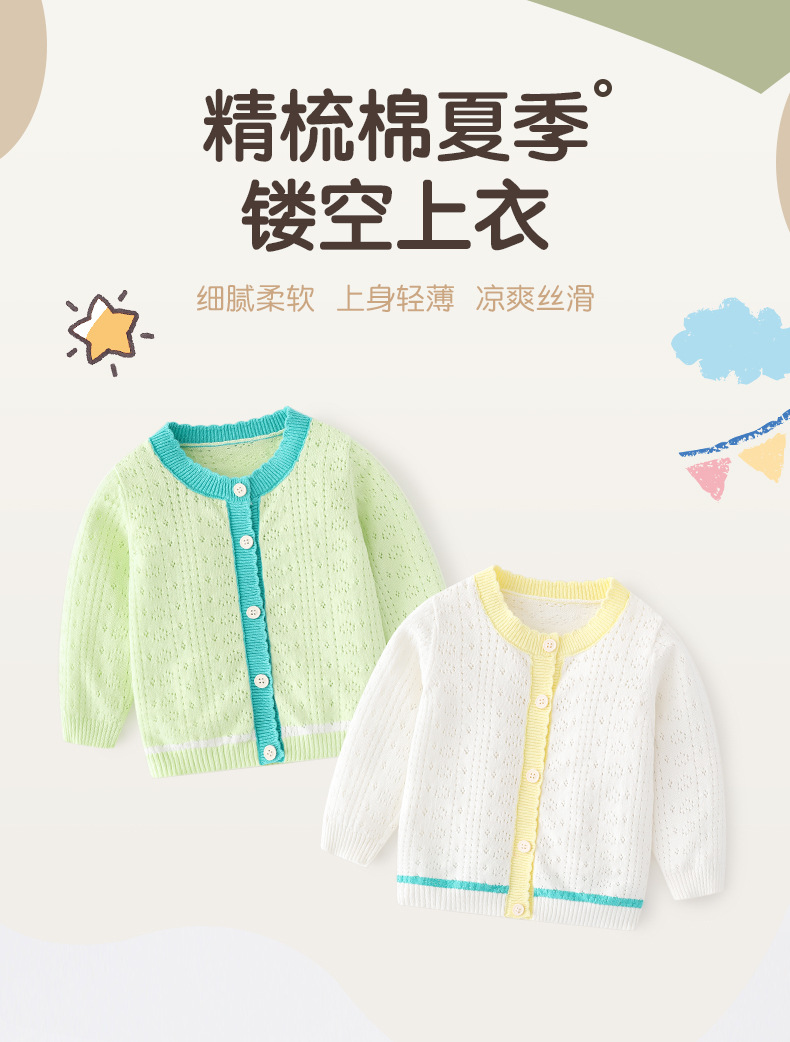 웨스턴 스타일 니트 여아 에어컨 셔츠 클래스 A 여아 가디건 얇은 여아 가디건 중공 순면 아기 에어컨 셔츠스토어 가기