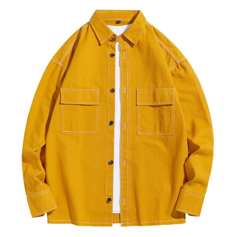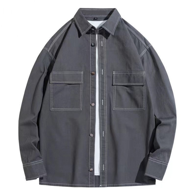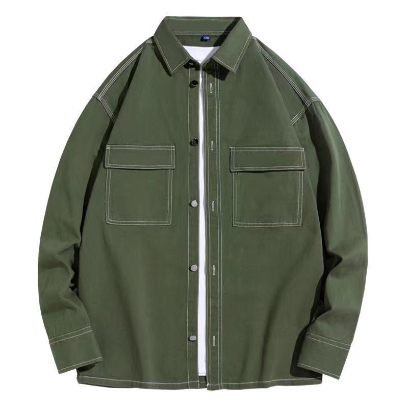 아메리칸 스타일 헤비 코튼 툴링 긴팔 셔츠 남성용 홍콩 스타일 캐주얼 디자인 센스 셔츠 느슨한 남성 패션 재킷