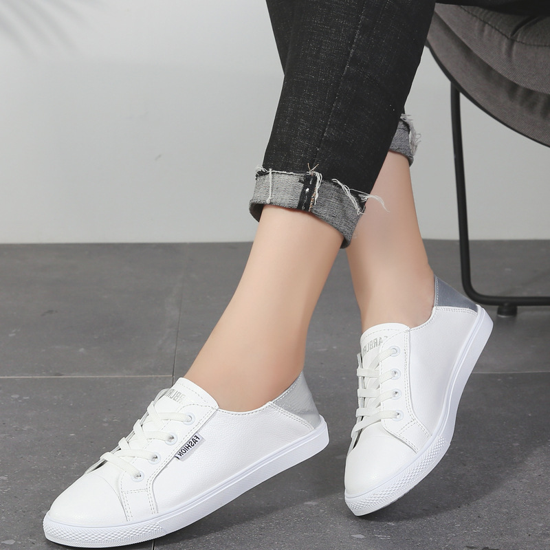 여성 학생용 신발 봄과 여름 작은 흰색 신발 2 개 착용 페달 캐주얼 부드러운 바닥 피곤하지 않은 발 플랫 가죽 흰색 신발