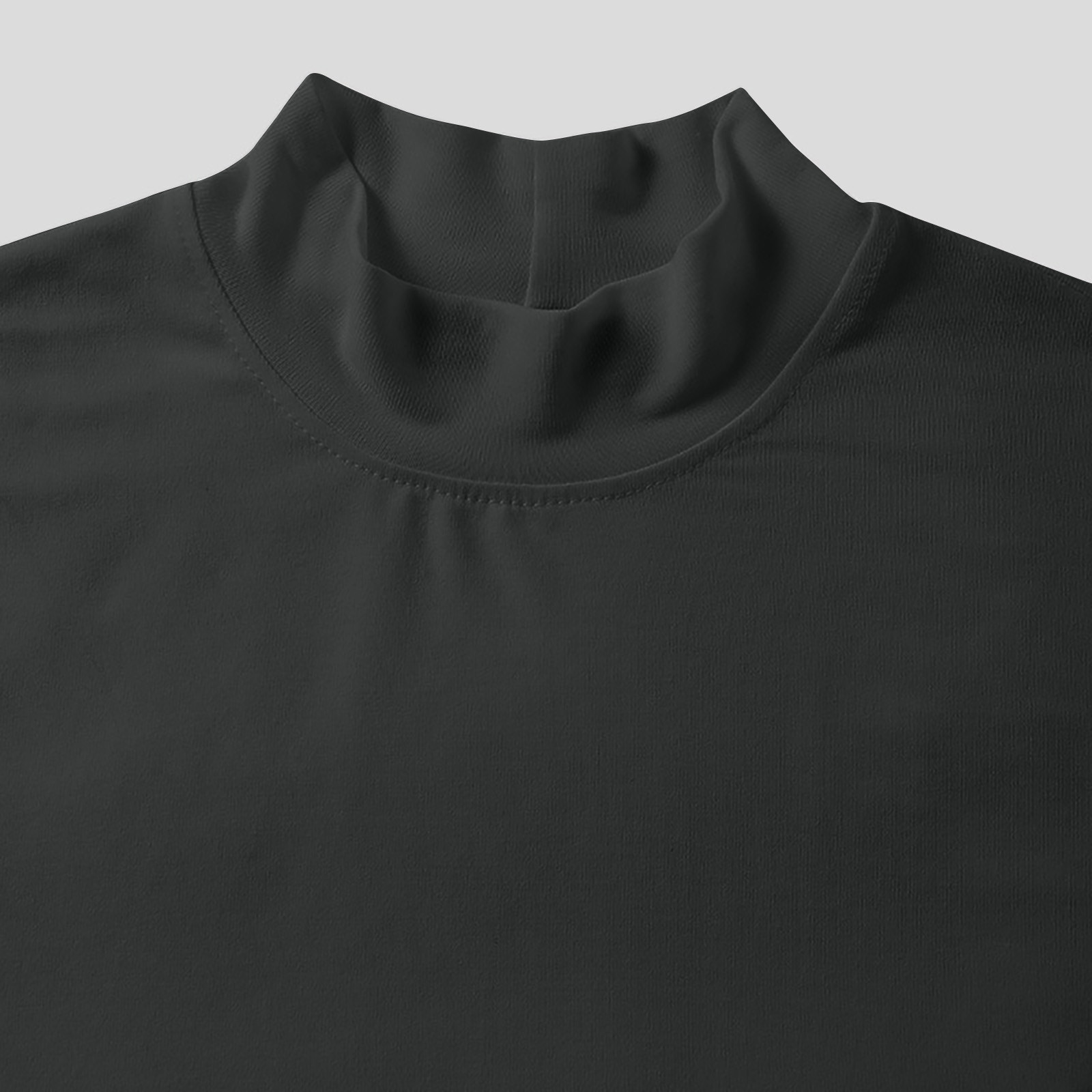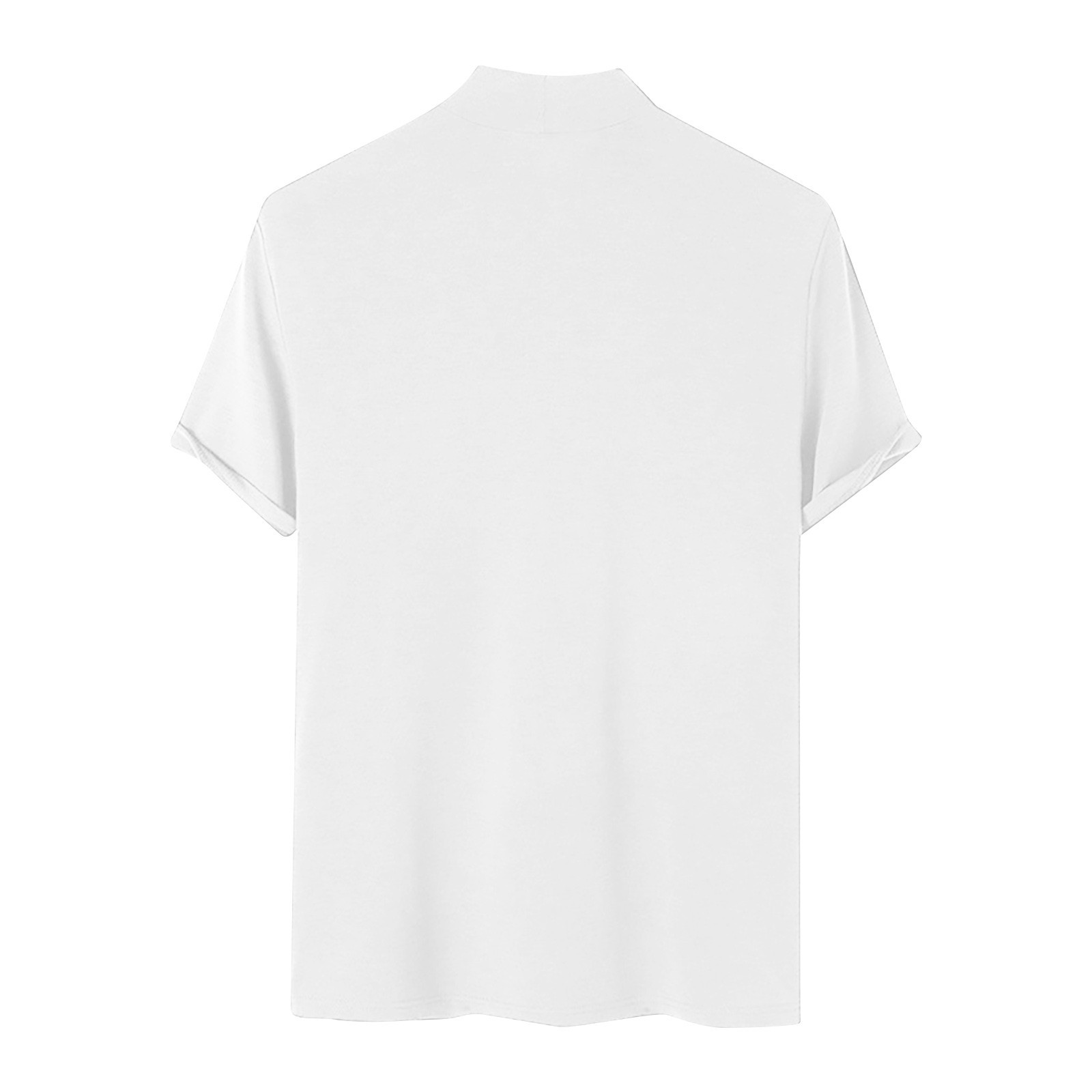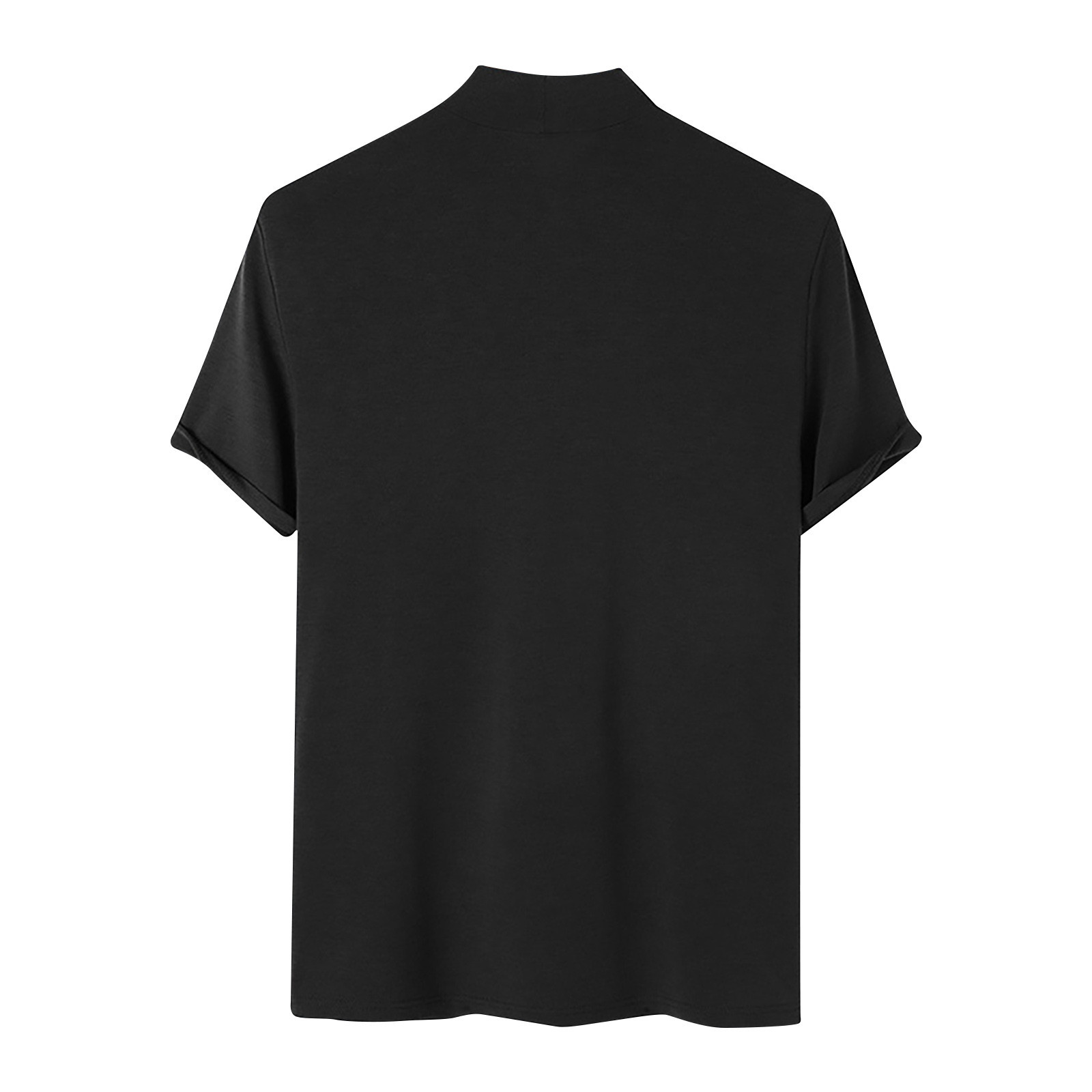 국경 간 AliExpress 남성 재고 2025 여름 솔리드 컬러 반팔 유행베이스 셔츠 남성용 타이트 하이 칼라 티셔츠
