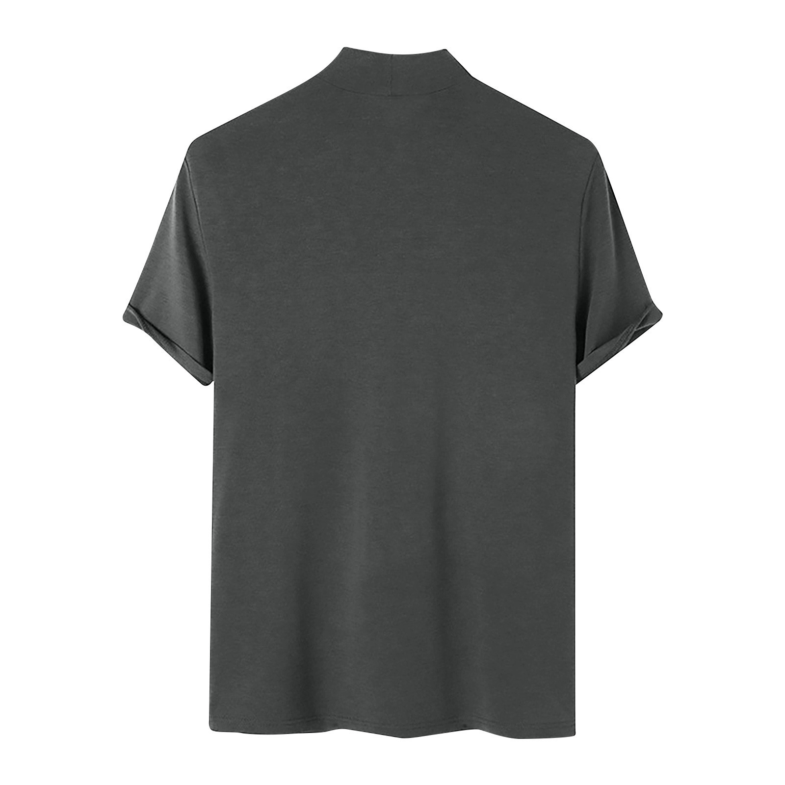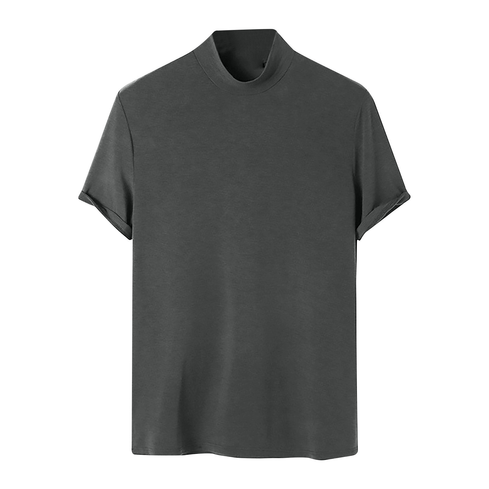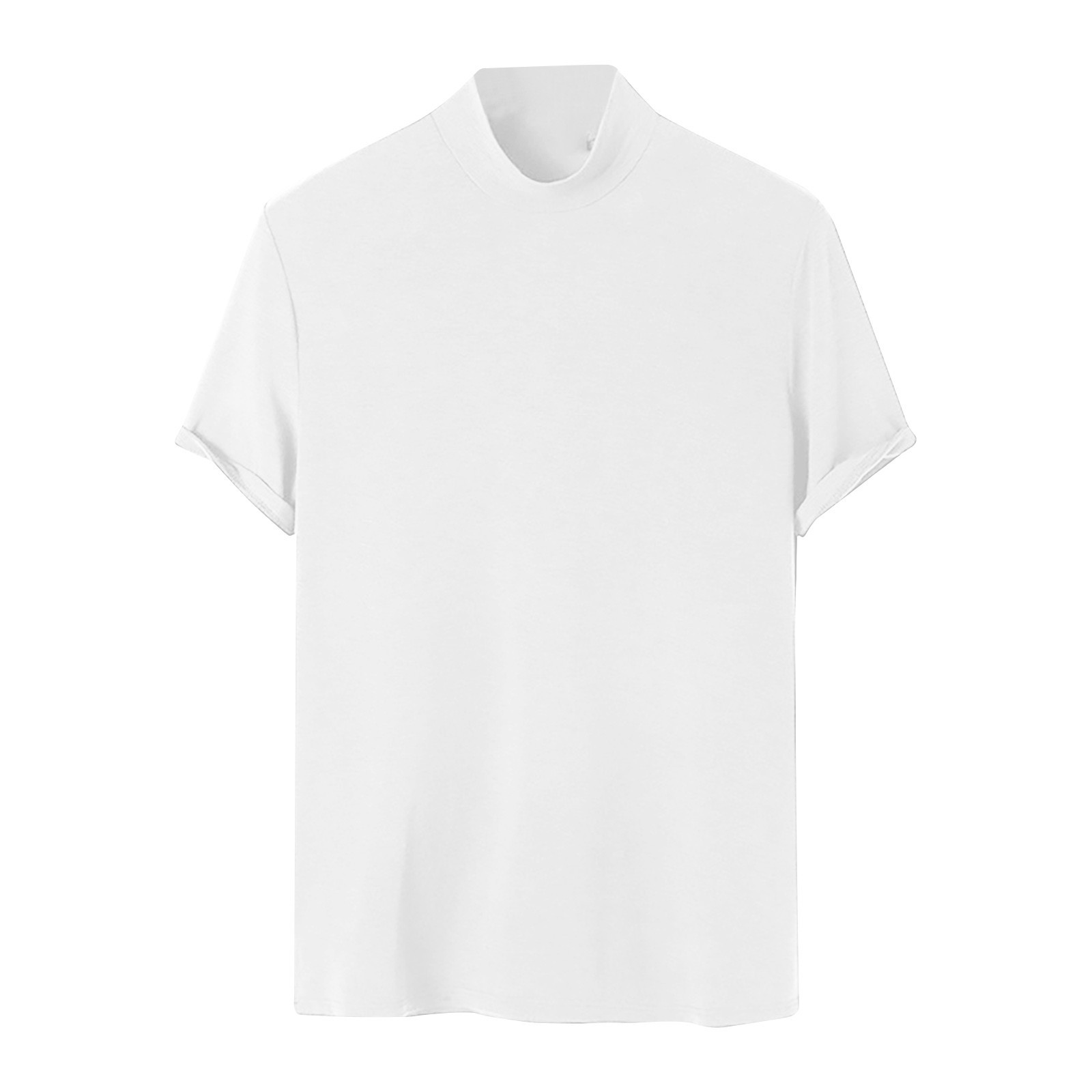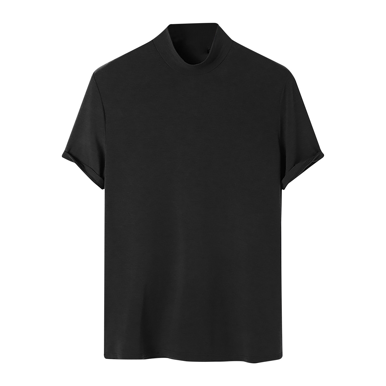 국경 간 AliExpress 남성 재고 2025 여름 솔리드 컬러 반팔 유행베이스 셔츠 남성용 타이트 하이 칼라 티셔츠스토어 가기