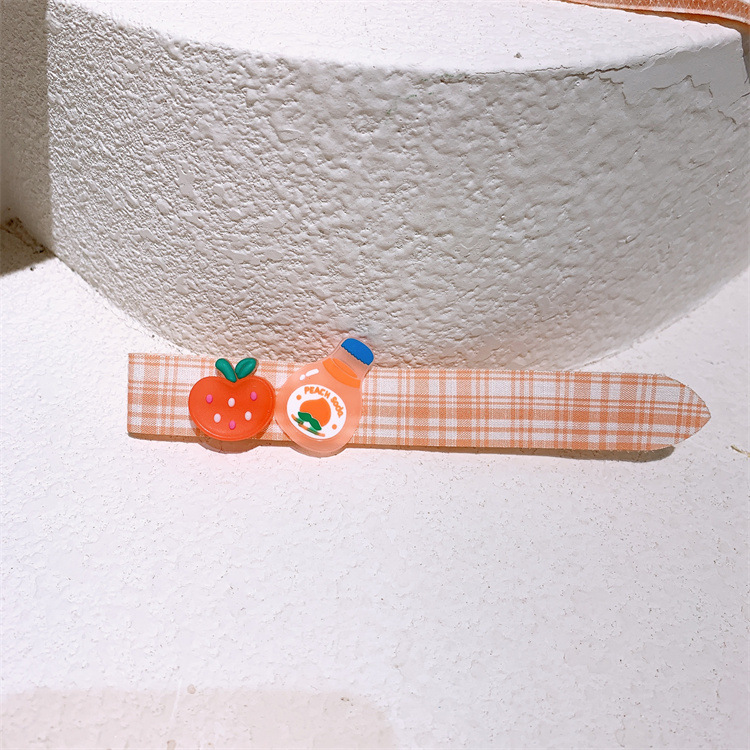새로운 어린이 귀여운 만화 곰 앞머리 스티커 어린 소녀 격자 무늬 꽃 벨크로 과일 깨진 머리 스티커 머리띠