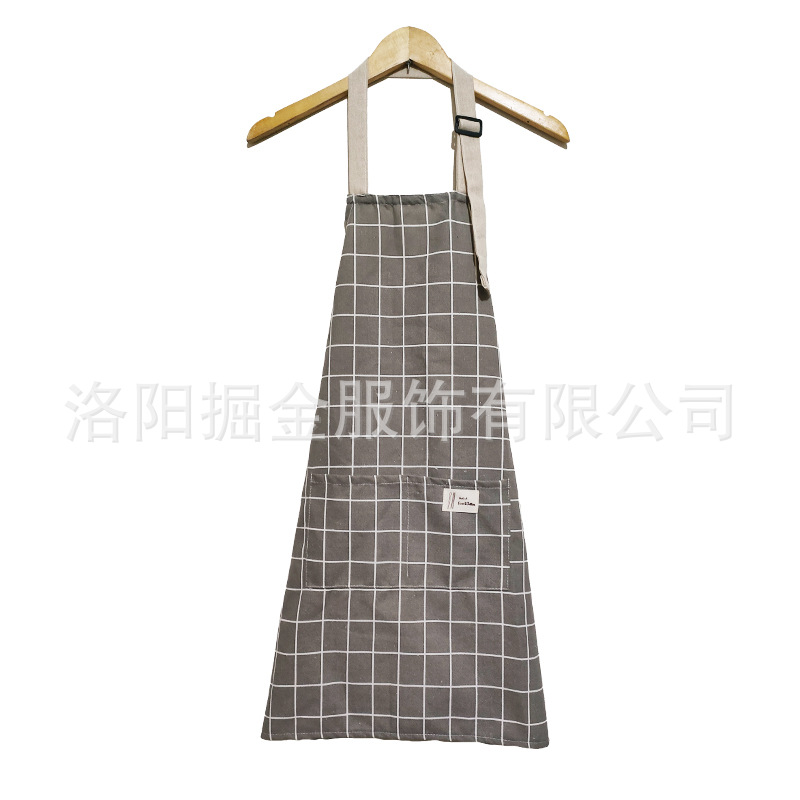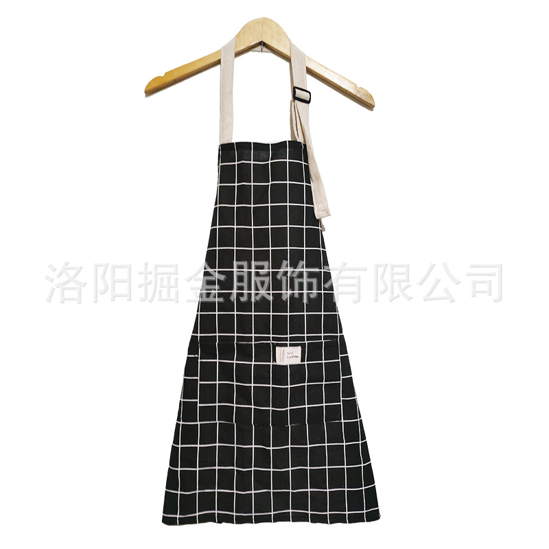 격자 무늬 코튼 린넨 여름 통기성 앞치마 주방 가정용 웨이터 작업복 일본식 간단한 패션 허리 도매스토어 가기