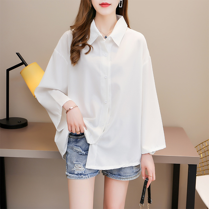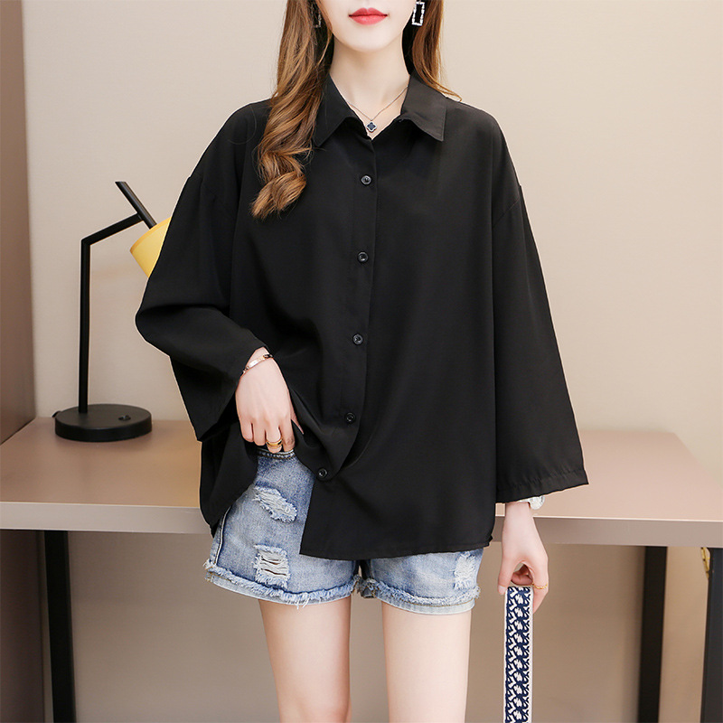 초대형 300kg 7 점 슬리브 기질 통근 카디건 긴 소매 싱글 브레스트 솔리드 컬러 느슨한 셔츠 탑 ZJ0021