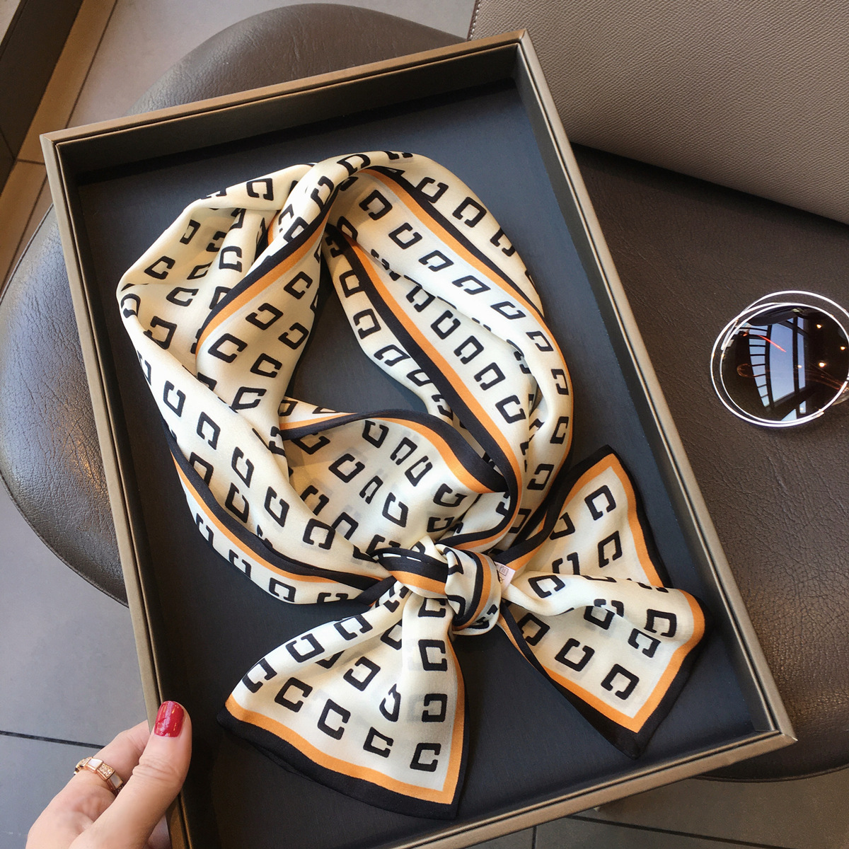 봄 한국식 모든 매치 팰리스 스타일 조랑말 실크 리본 장식 스카프 여성용 작은 스카프 뽕나무 실크 롱 스카프