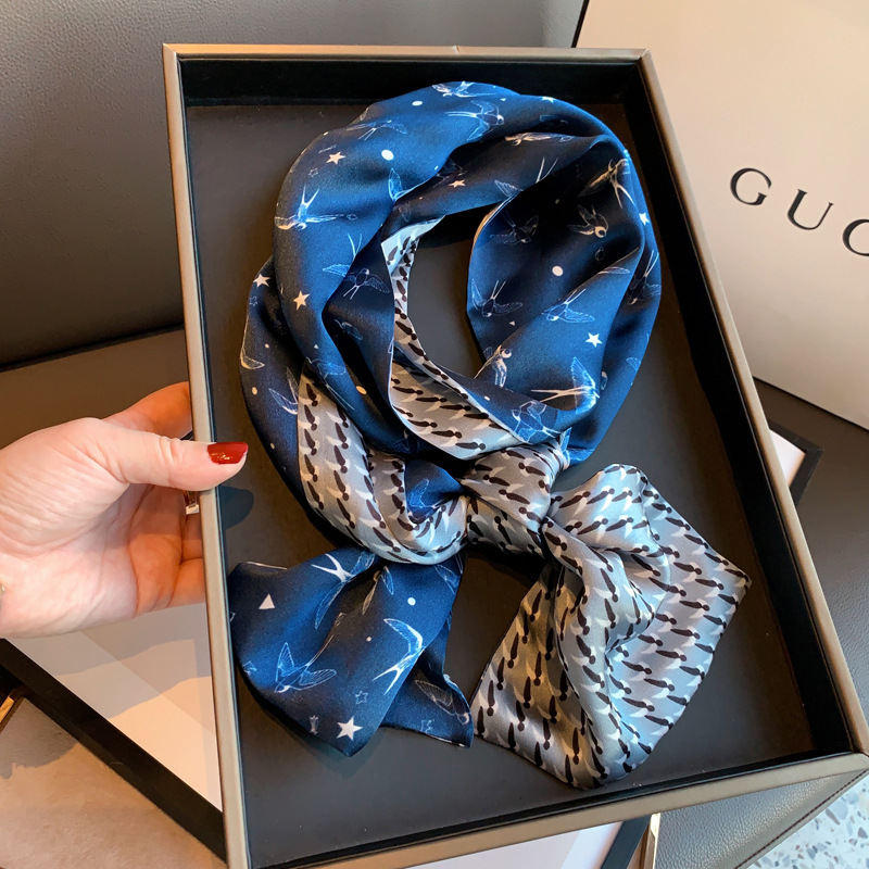봄 한국식 모든 매치 팰리스 스타일 조랑말 실크 리본 장식 스카프 여성용 작은 스카프 뽕나무 실크 롱 스카프스토어 가기