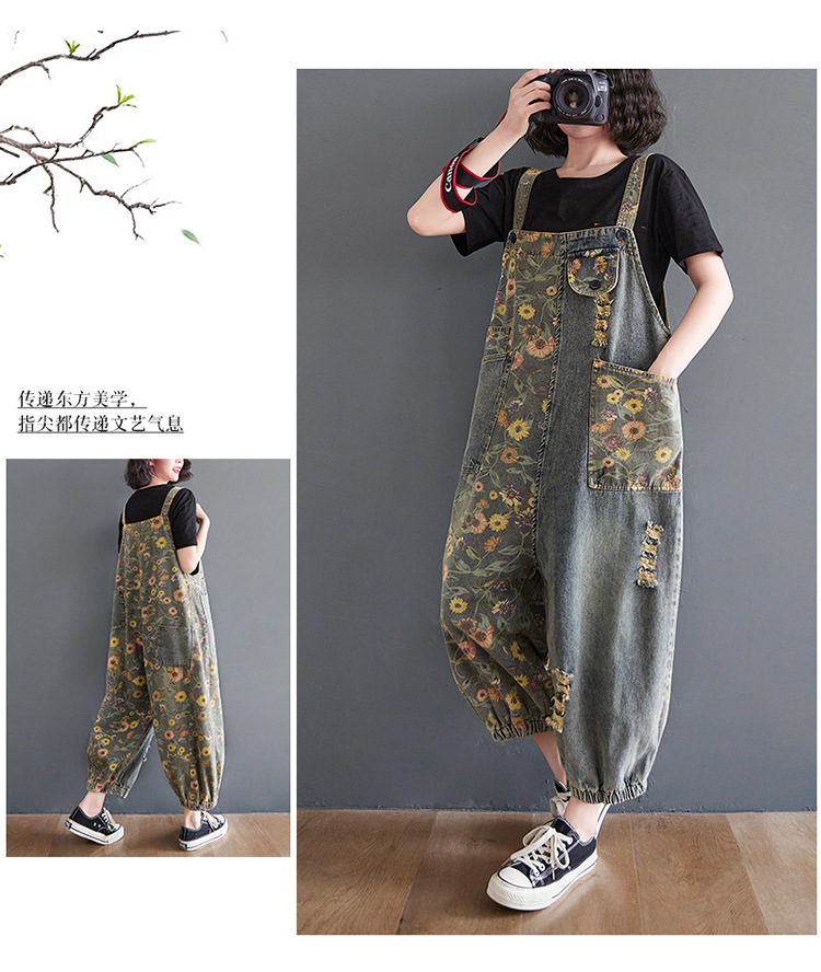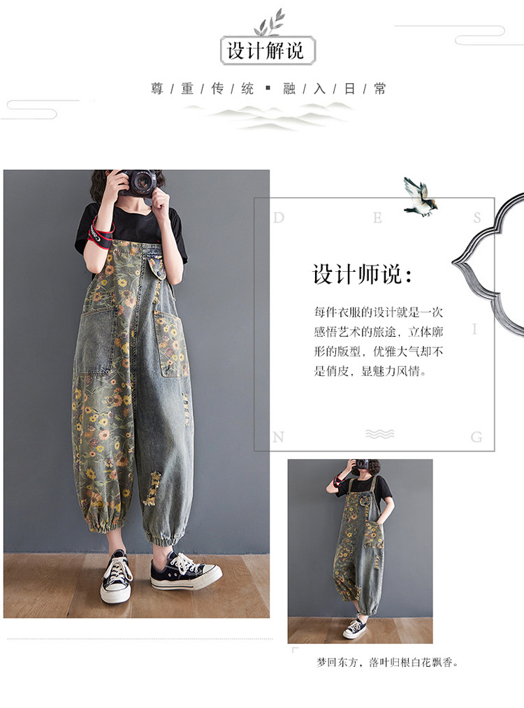 2025 봄 여름 신상 문예풍 빅사이즈 프린트 데님 멜빵바지 여성용 # 가격 제한