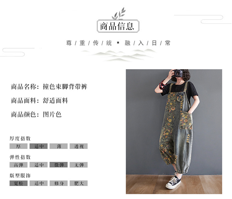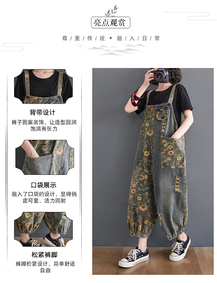 2025 봄 여름 신상 문예풍 빅사이즈 프린트 데님 멜빵바지 여성용 # 가격 제한스토어 가기