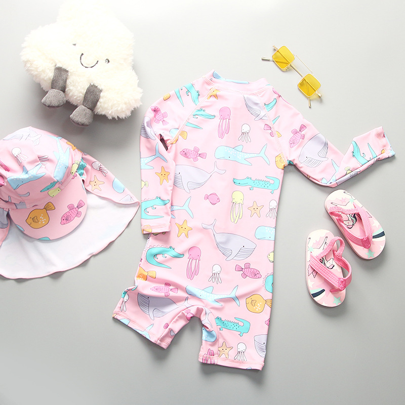 여아 수영복 긴 소매 선 스크린 어린이 아기 수영복 소녀 비치 서퍼 세트 조수스토어 가기