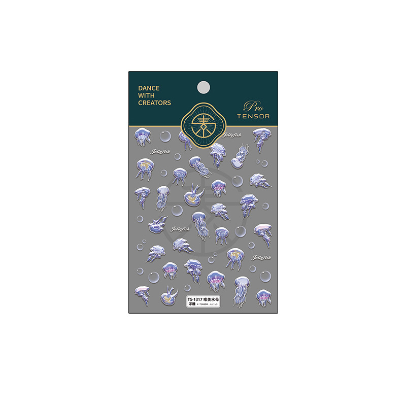 철 스테레오 새로운 기술 얇은 힘든 네일 스티커 얇은 투명 다시 접착제 바보 네일 스티커 TS-1317 아름다운 해파리