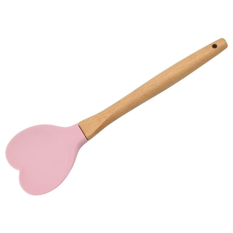 재고 실리콘 주걱 창조적 인 하트 모양의 나무 손잡이 실리콘 숟가락 가정용 주방 용품 냄비 숟가락 주방 요리 도구