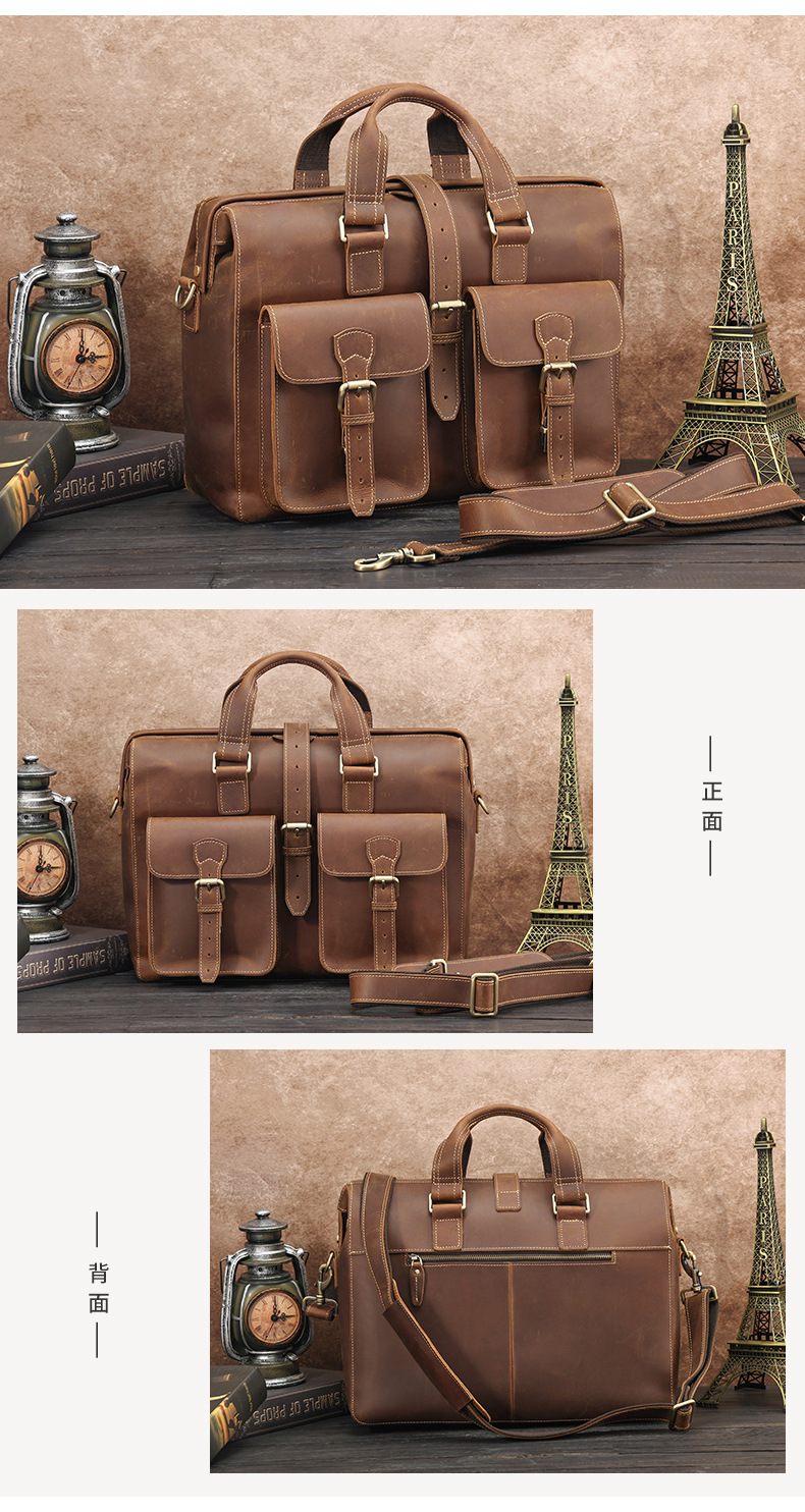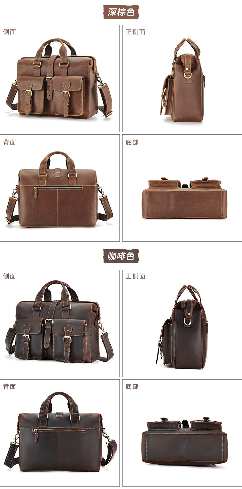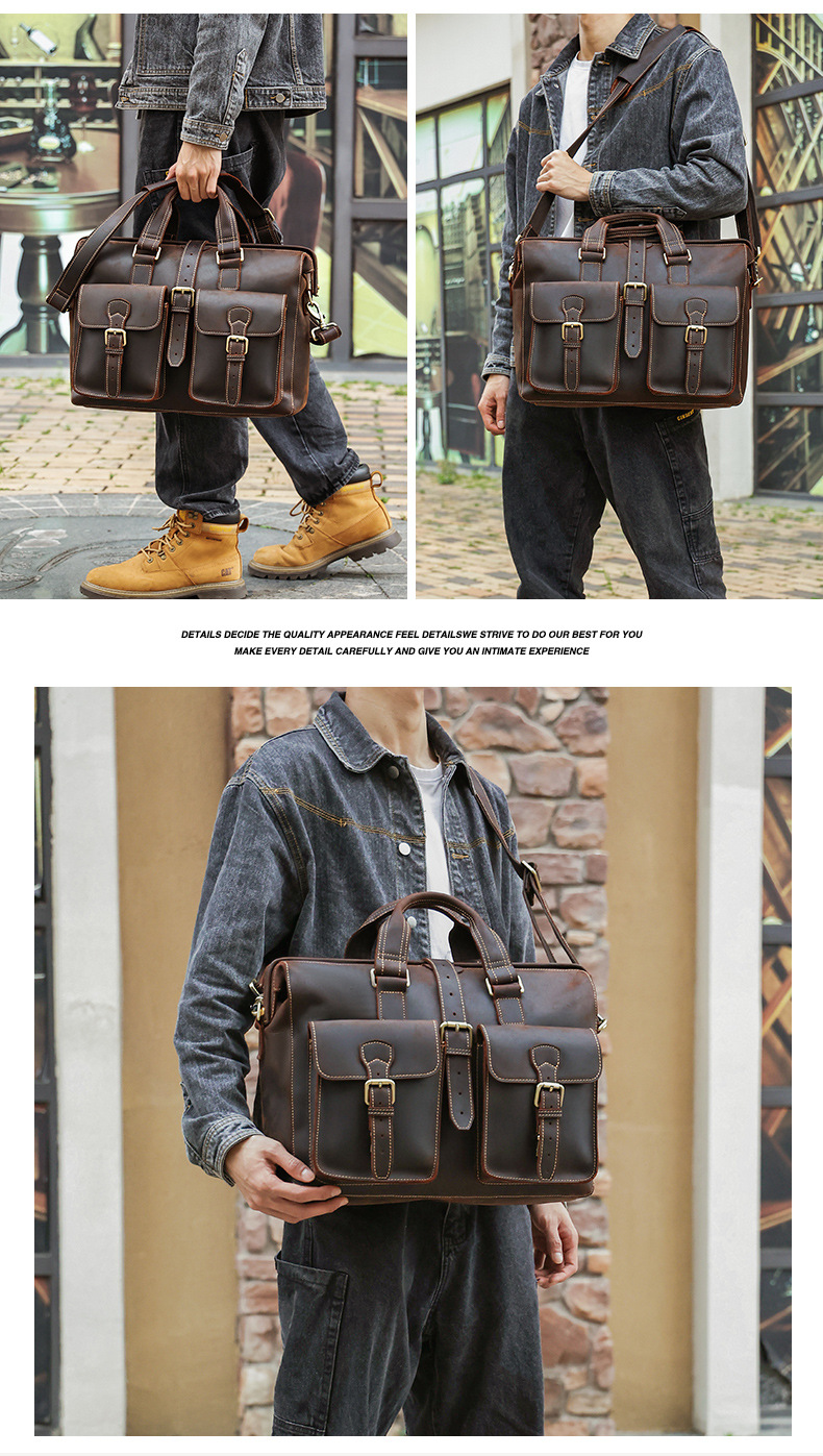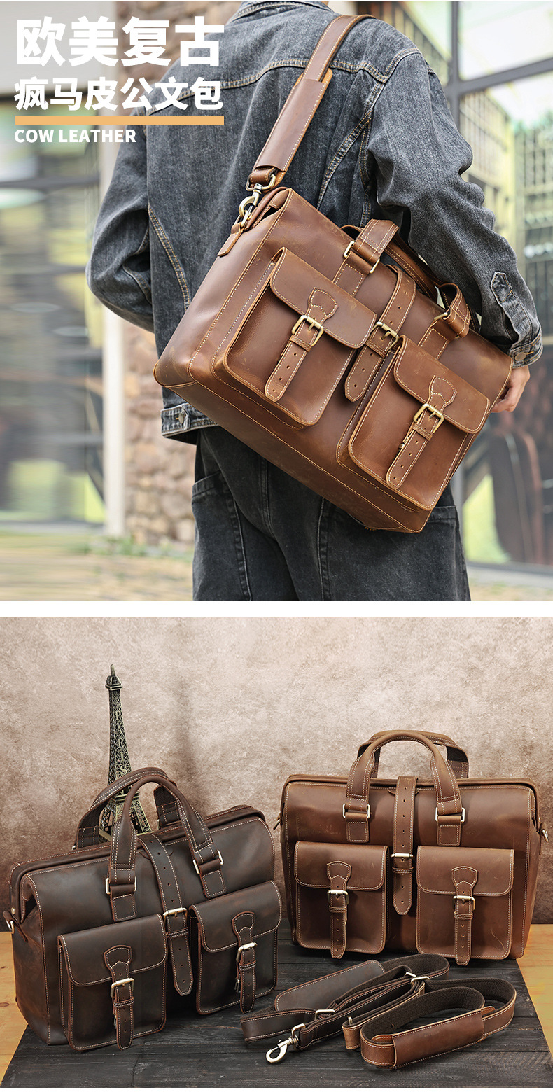 정품 가죽 서류 가방 남성용 가방 대용량 15.6 인치 싱글 숄더 컴퓨터 가방 크레이지 호스 가죽 레트로 휴대용 남성용 비즈니스 가방스토어 가기
