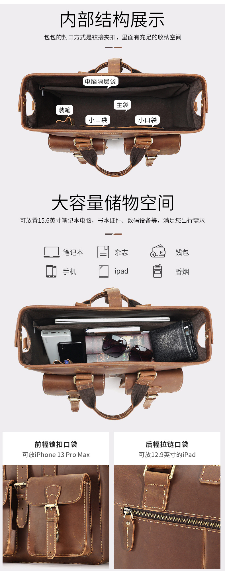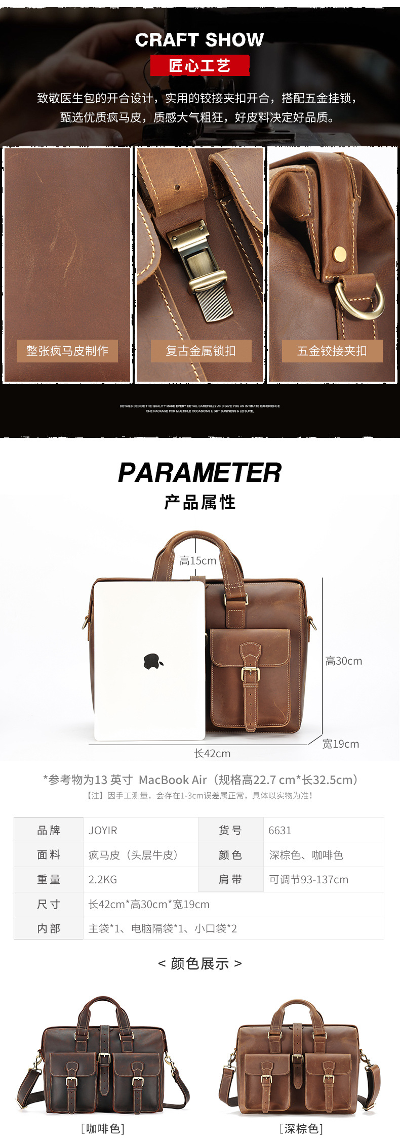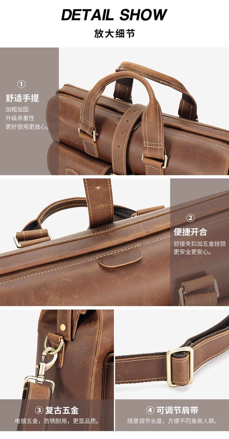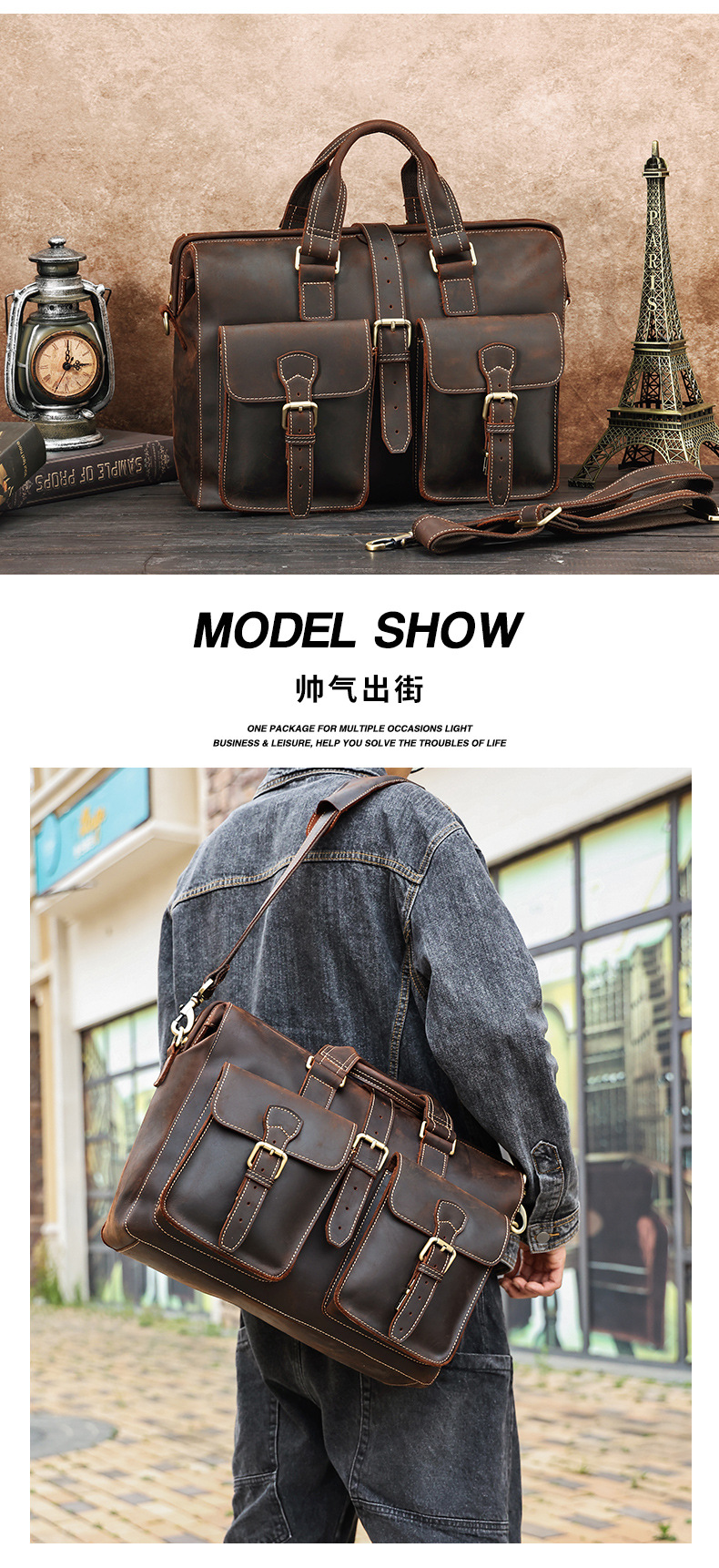 정품 가죽 서류 가방 남성용 가방 대용량 15.6 인치 싱글 숄더 컴퓨터 가방 크레이지 호스 가죽 레트로 휴대용 남성용 비즈니스 가방스토어 가기
