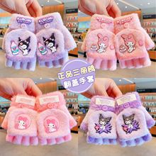 儿童秋冬季小女孩写字上学专用半指手套女童防寒保暖毛绒翻盖手套