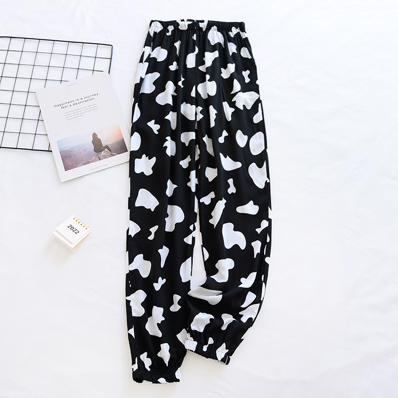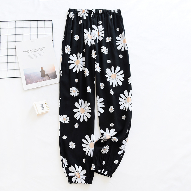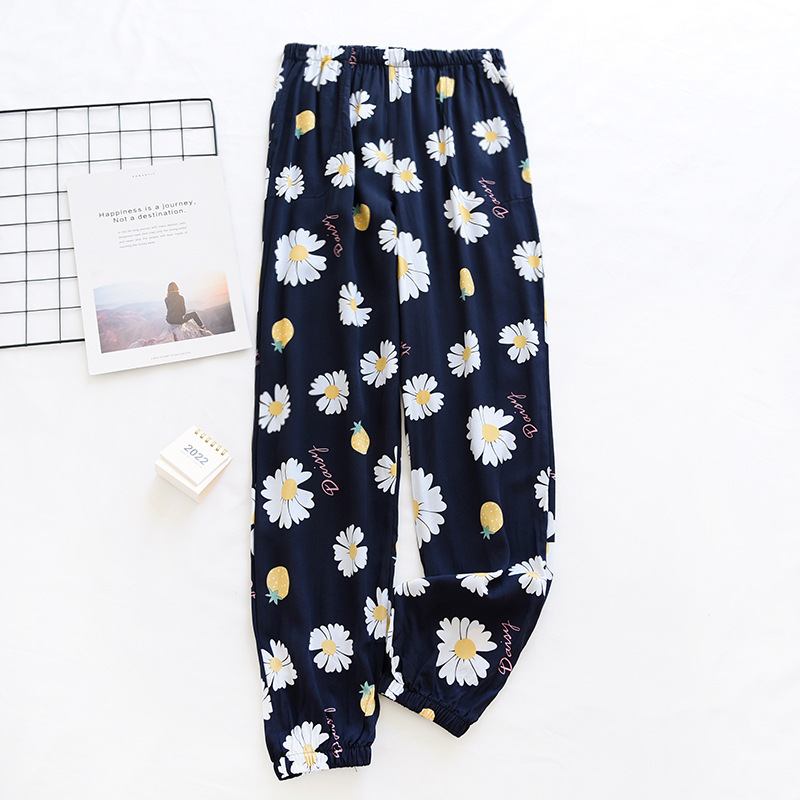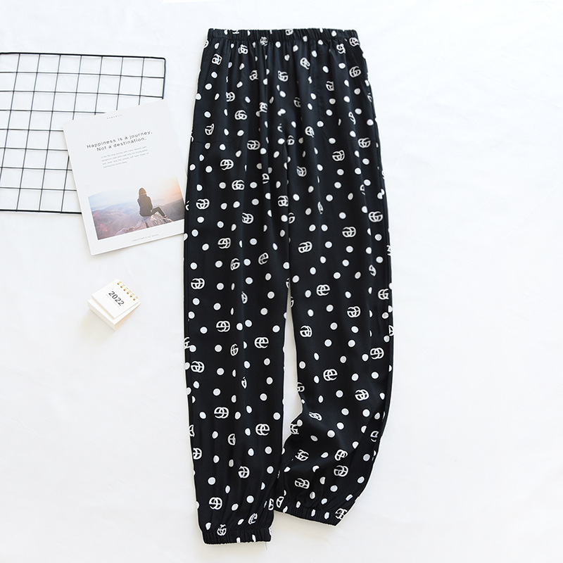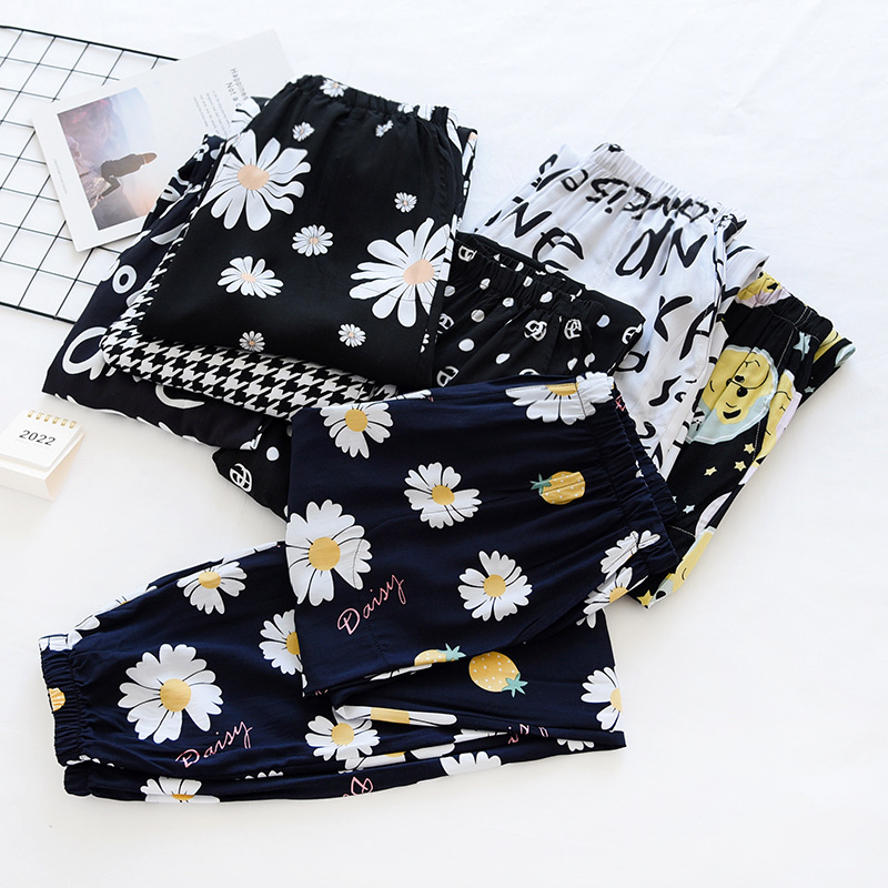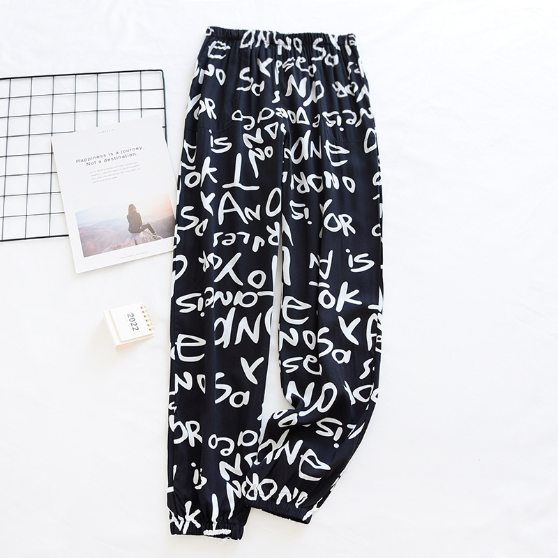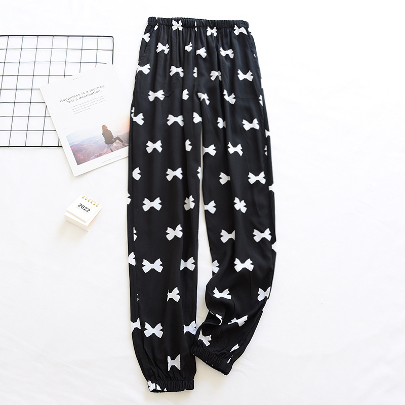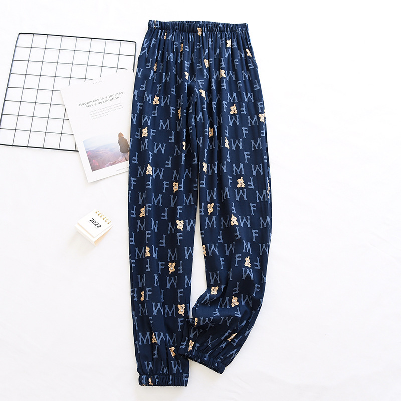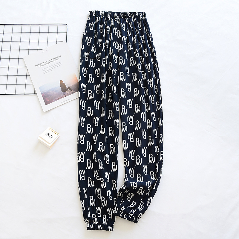 여름 여성용 면 실크 바지 얇은 블루머 성인 모기 방지 바지 비치 바지 인조 면 캐주얼 느슨한 잠옷 바지