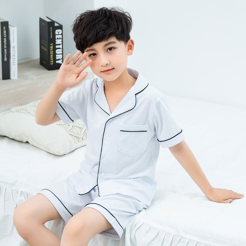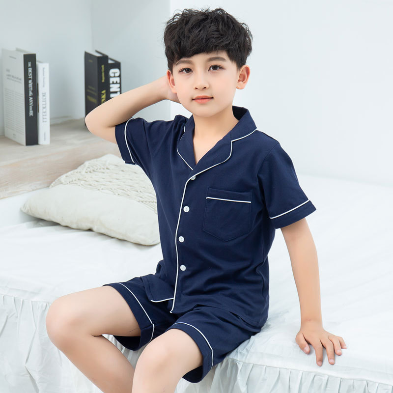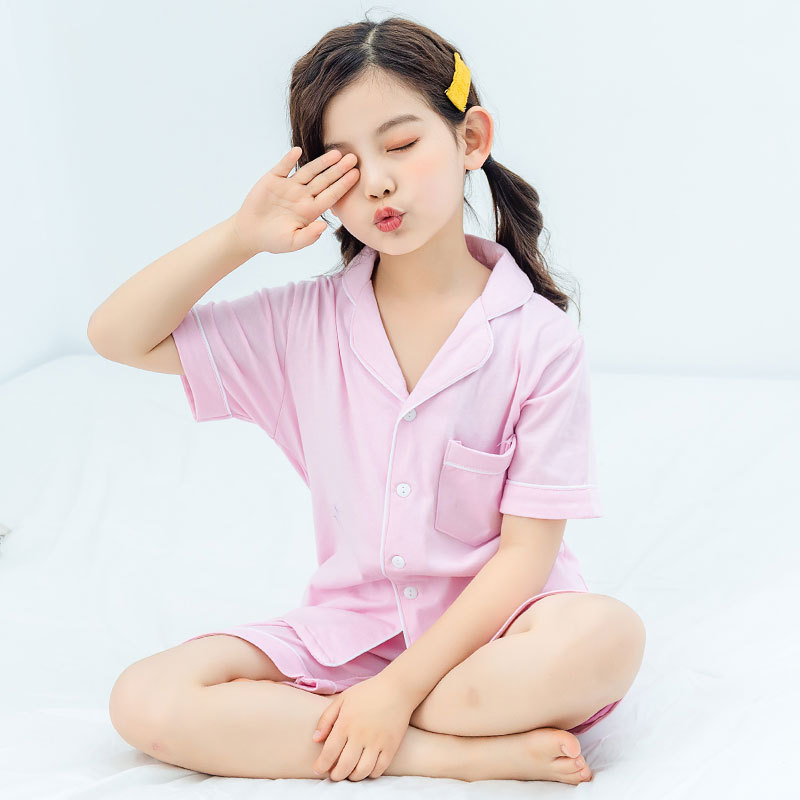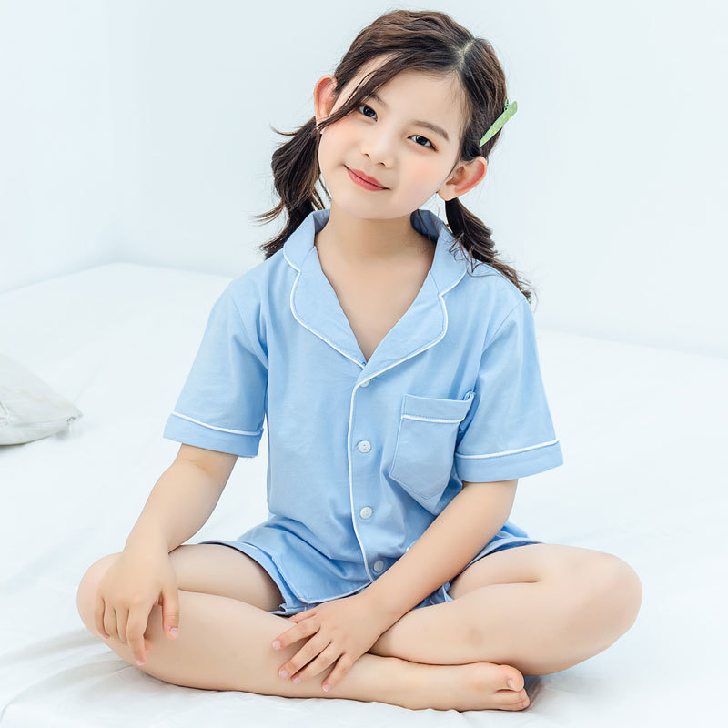 남아용 잠옷, 여름용 얇은 면 가디건, 큰 아동용 가정복 세트, 여아용 잠옷, 부모-자식 의류스토어 가기