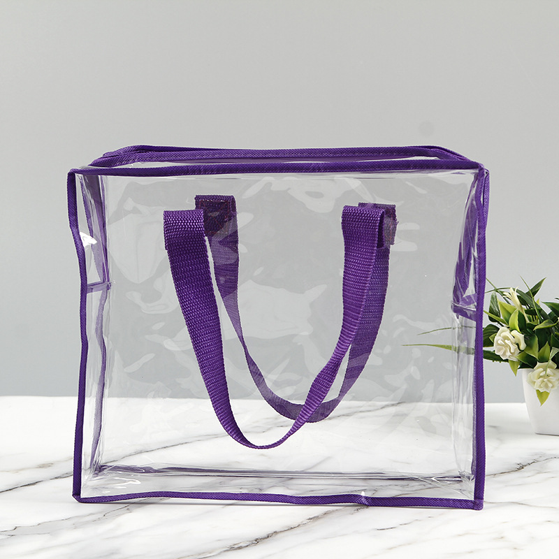 PVC 재봉 토트 백 선물 휴대용 지퍼 백 의류 재봉 플라스틱 지퍼 보관 가방 보라색스토어 가기