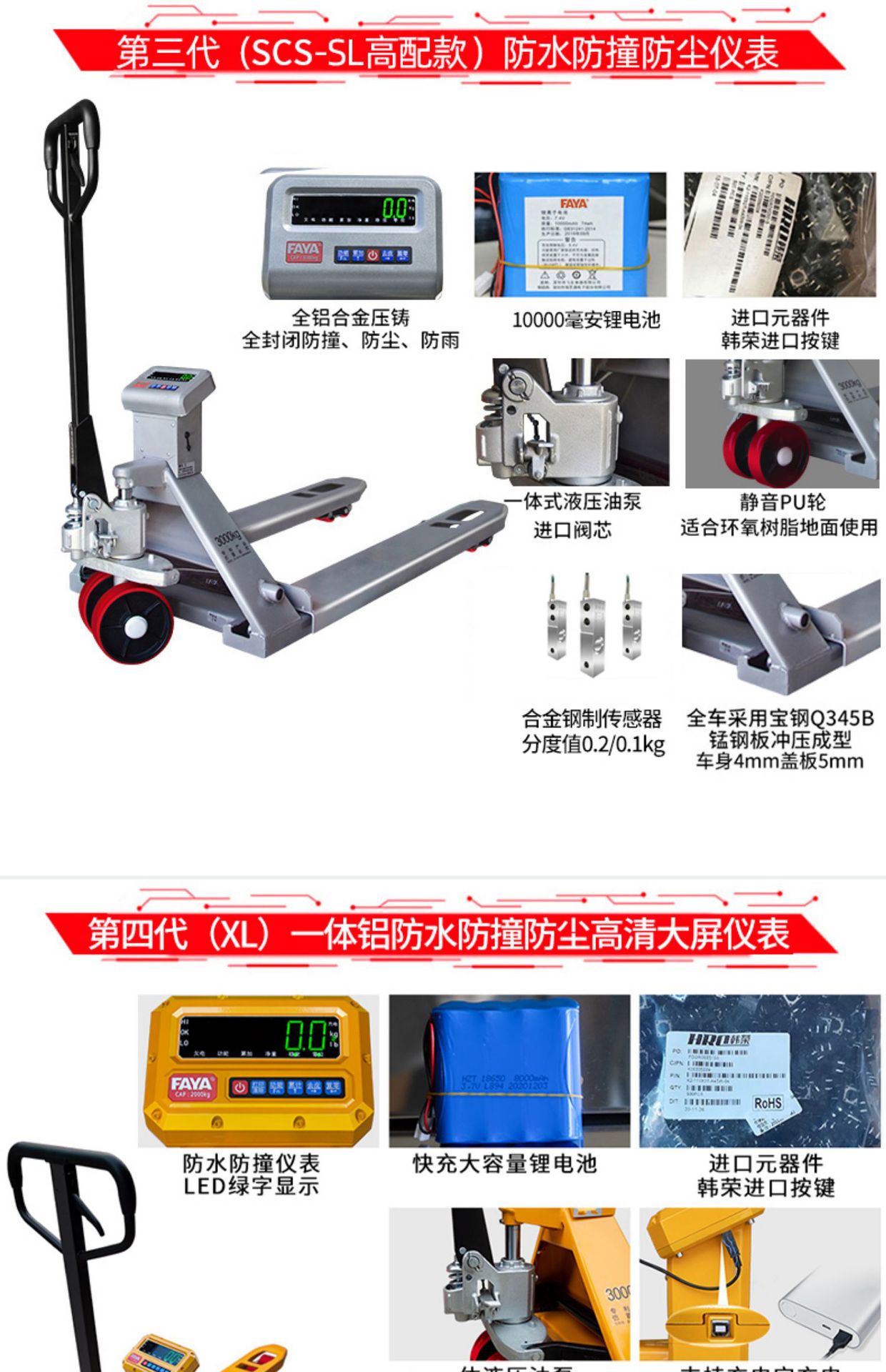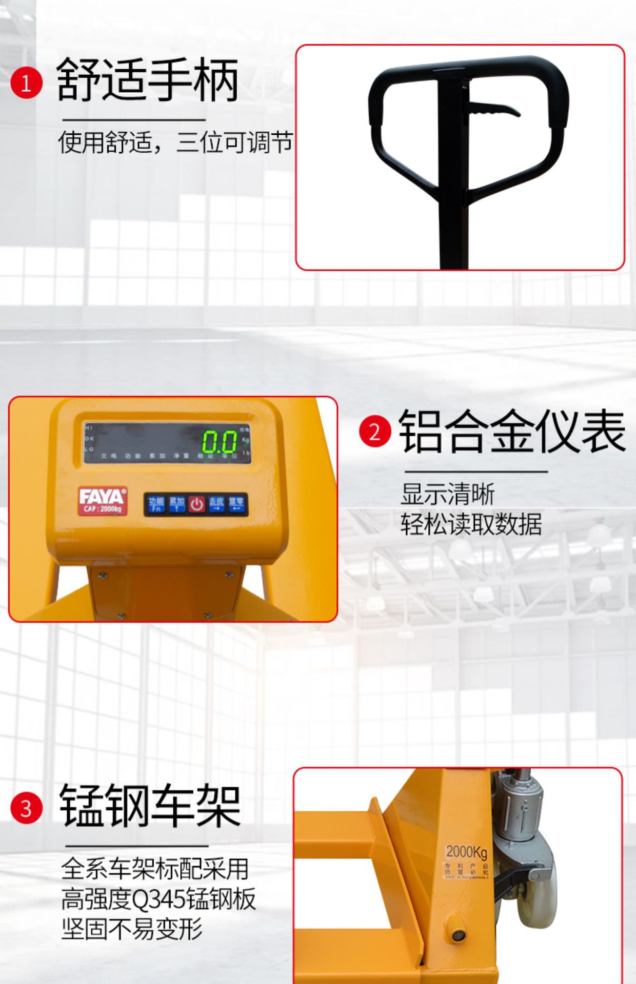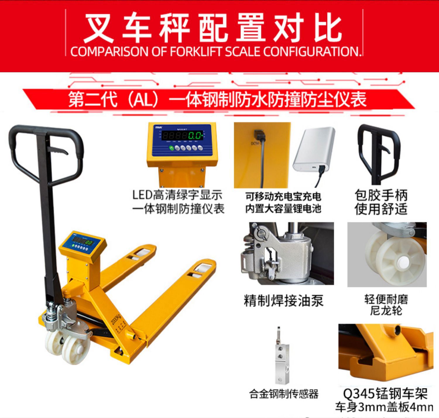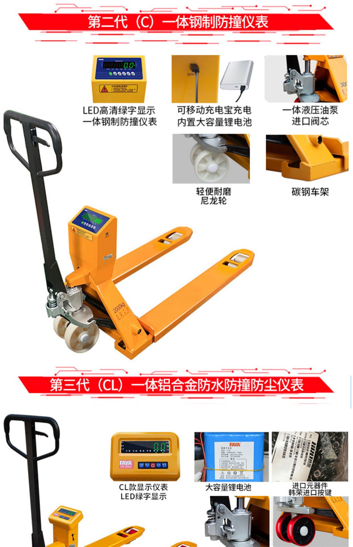 최고의 Feiya 전자 지게차 저울 ECS-CL 운반차 무게 방수 블루투스 수동 유압 모바일 지게차 저울스토어 가기