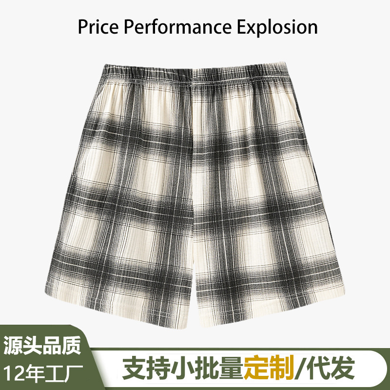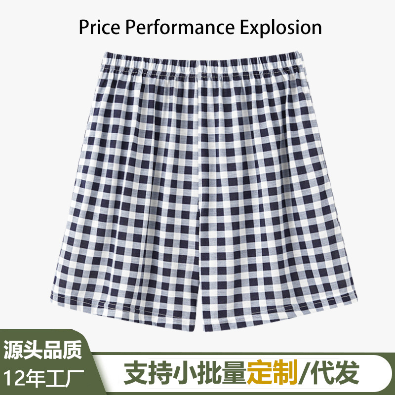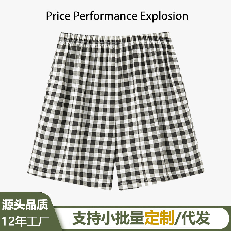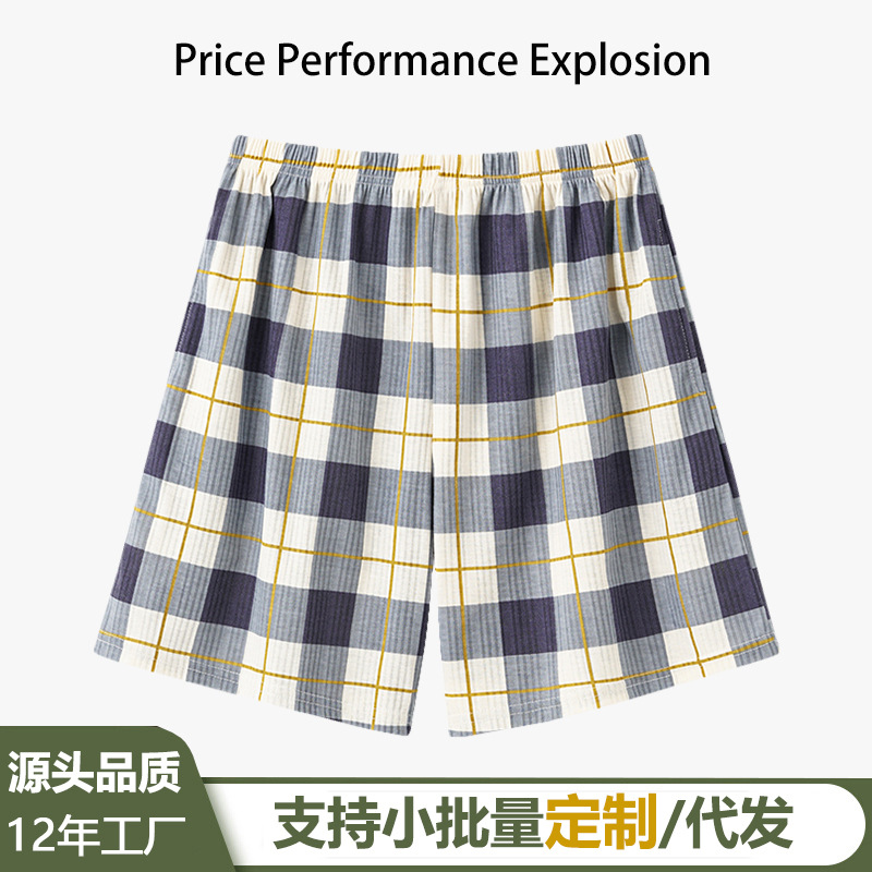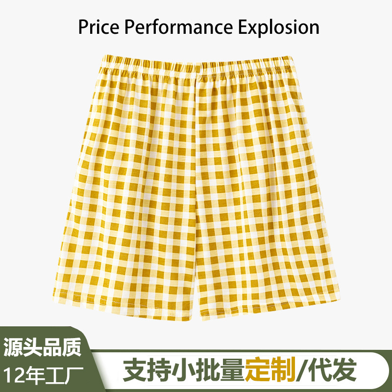홈 반바지 파자마 바지 여성용 봄과 여름 홈 팬츠 커플 격자 무늬 얇은 느슨한 캐주얼 겉옷 바지 남성용스토어 가기