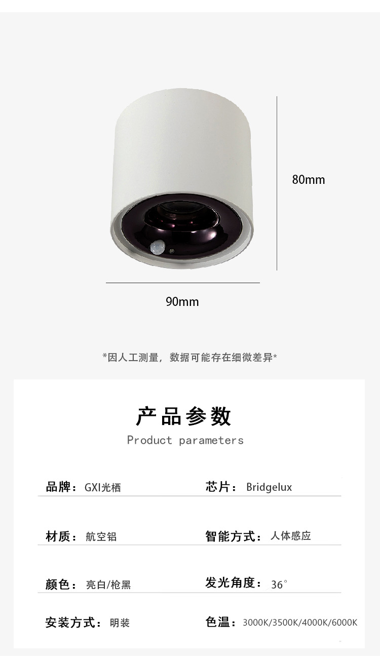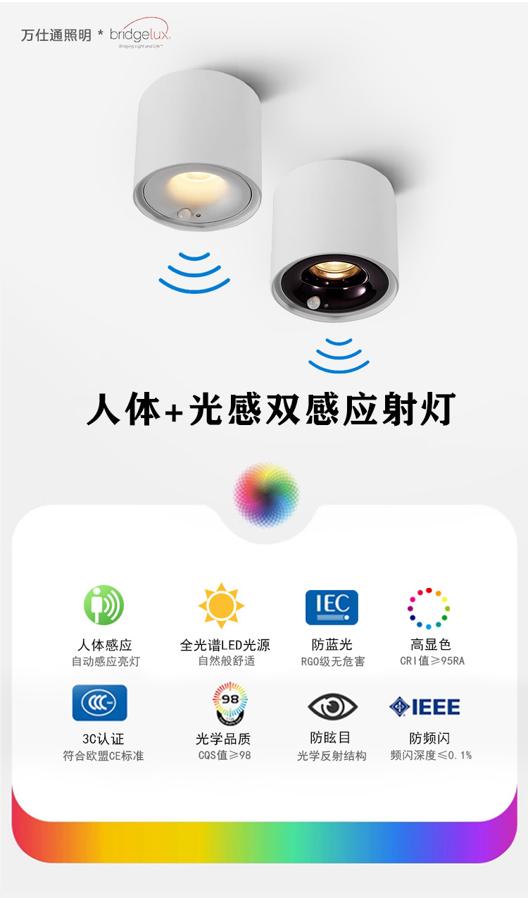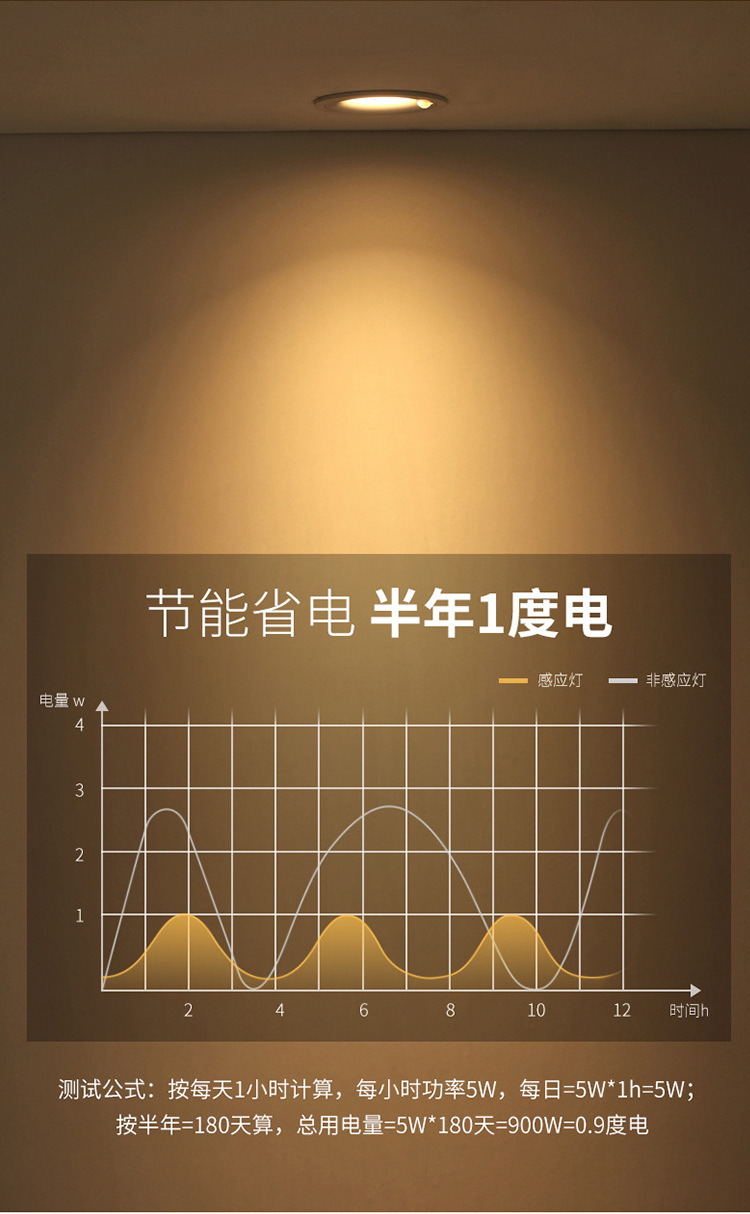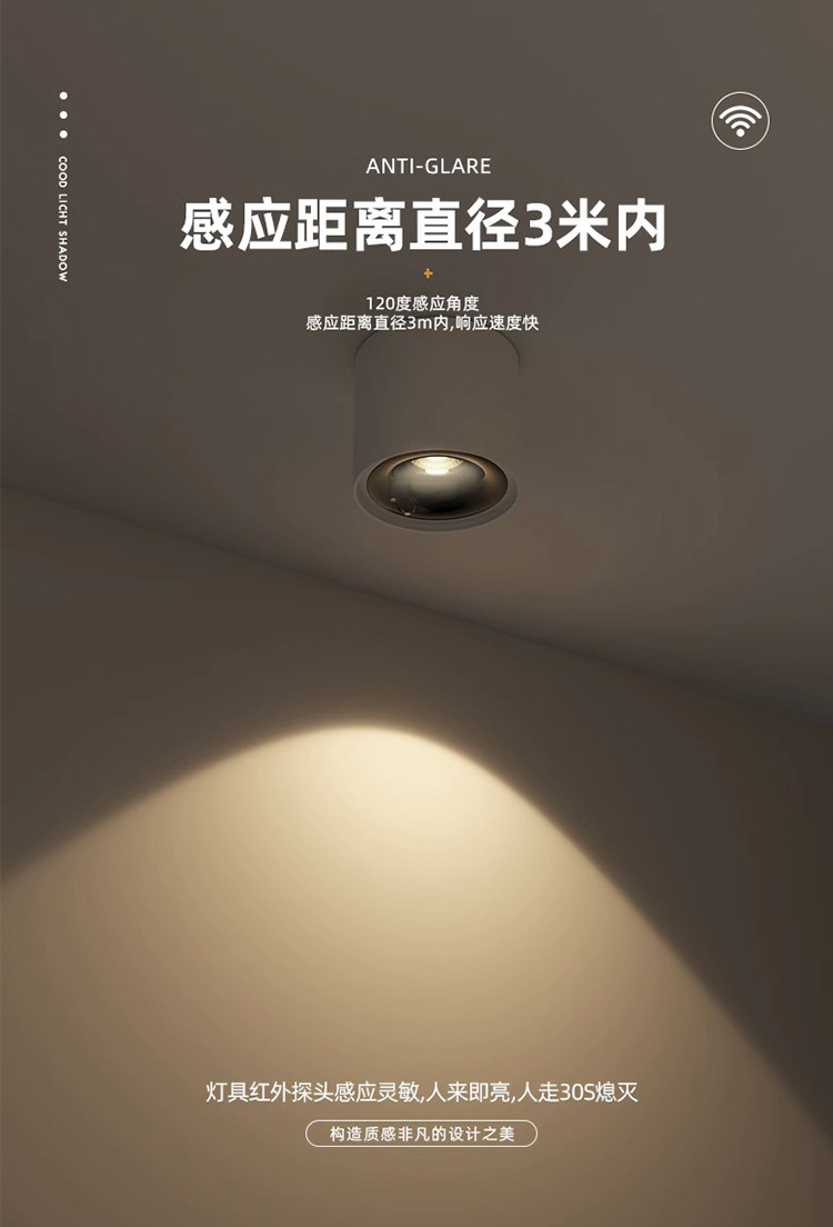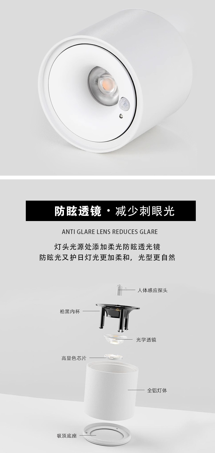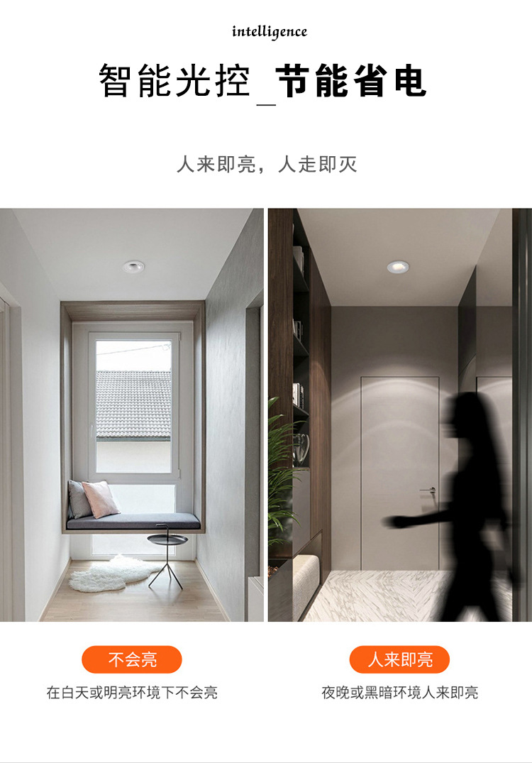 인체 유도 스포트라이트 led 눈부심 방지 임베디드 호텔 빌라 계단 통로 복도 입구 지능형 다운 라이트