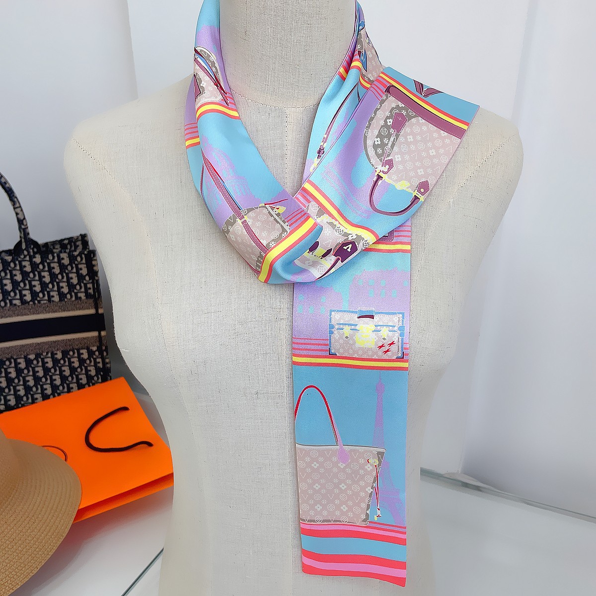봄과 가을 새로운 한국식 새틴 격자 무늬 실크 스카프 긴 헤어 밴드 여성용 만능 스카프 리본 벨트 스카프스토어 가기