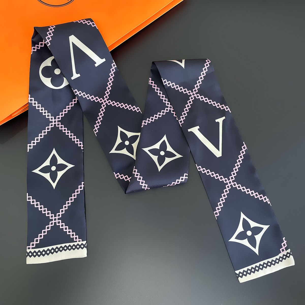봄과 가을 새로운 한국식 새틴 격자 무늬 실크 스카프 긴 헤어 밴드 여성용 만능 스카프 리본 벨트 스카프