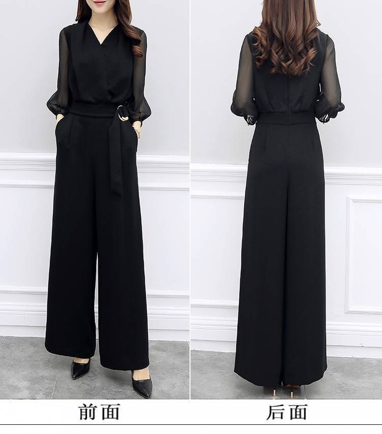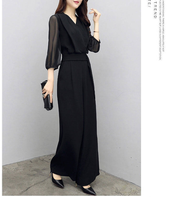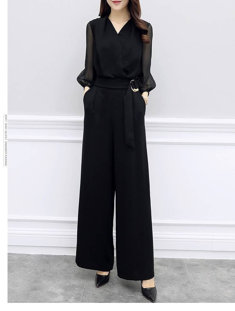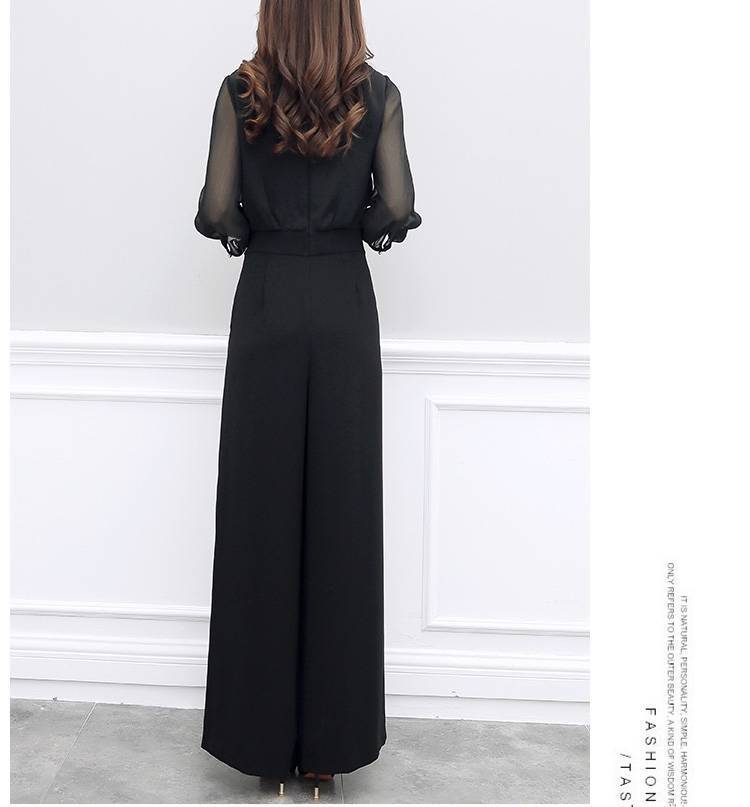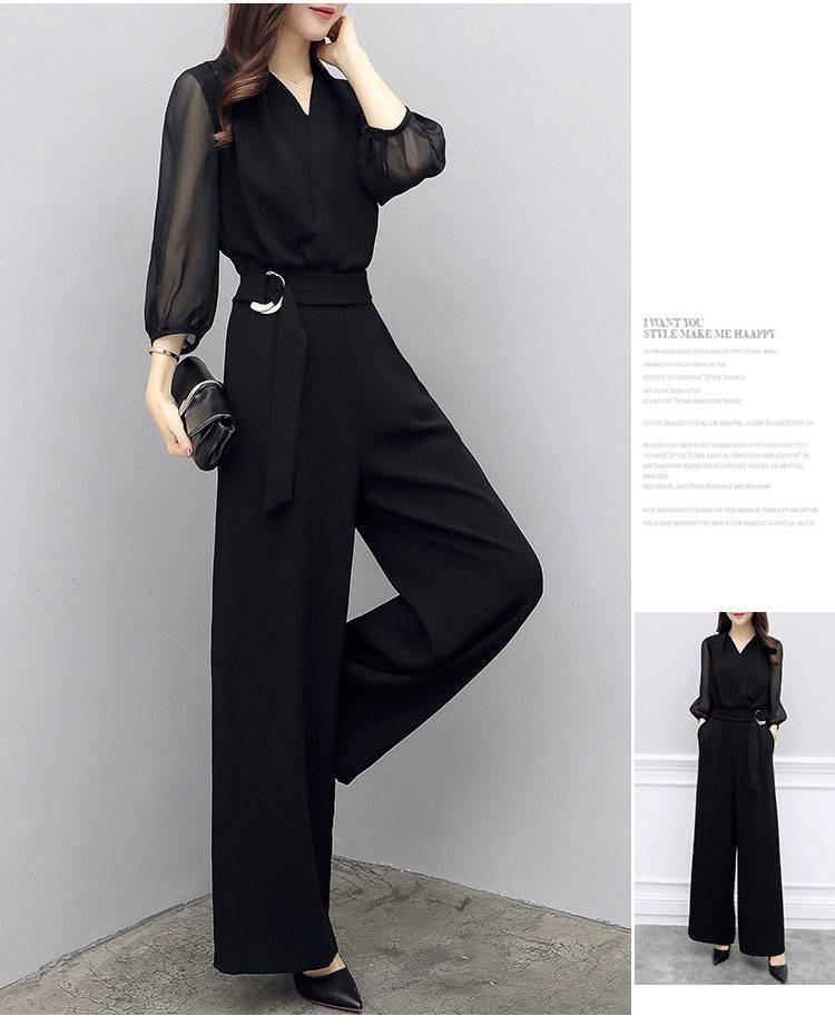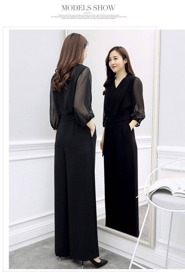 봄과 여름 새로운 하이 웨이스트 캐주얼 점프 슈트 블랙 크롭 슬리브 슬림 핏 슬리밍 우아한 와이드 레그 점프 슈트 세트 여성스토어 가기