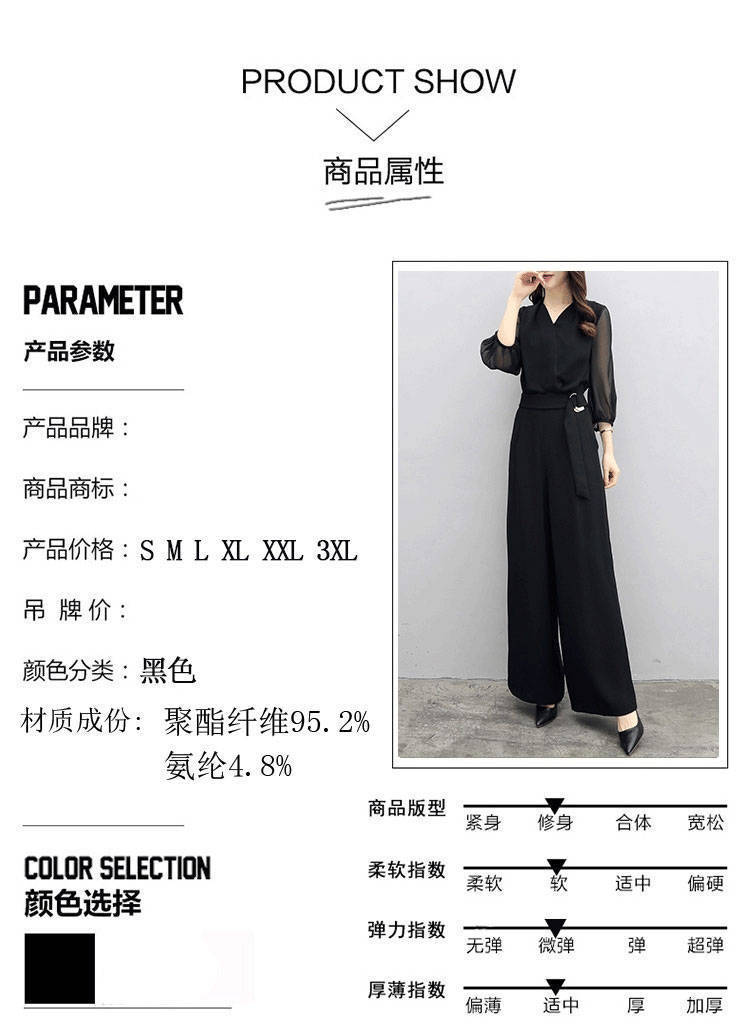 봄과 여름 새로운 하이 웨이스트 캐주얼 점프 슈트 블랙 크롭 슬리브 슬림 핏 슬리밍 우아한 와이드 레그 점프 슈트 세트 여성