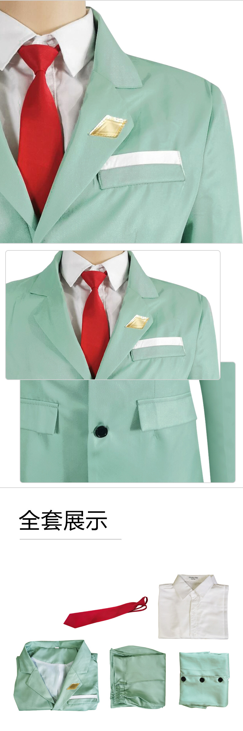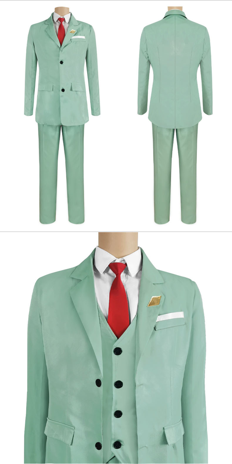 • 황혼 녹색 세트 (셔츠, 재킷, 바지, 양복 조끼, 나비 넥타이)