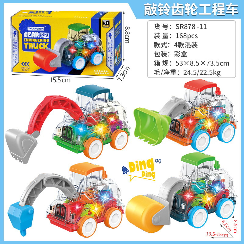 2022新款敲铃齿轮玩具车,工程车系列,玩具批发地摊热卖