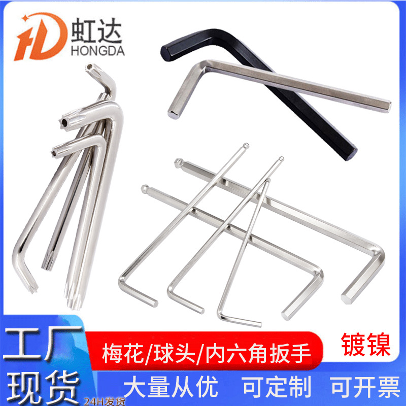 니켈 도금 육각 소켓 플랫 헤드 렌치 드라이버 미디엄 롱 볼 헤드 렌치 토크 연장 L형 링 도난 방지 렌치스토어 가기