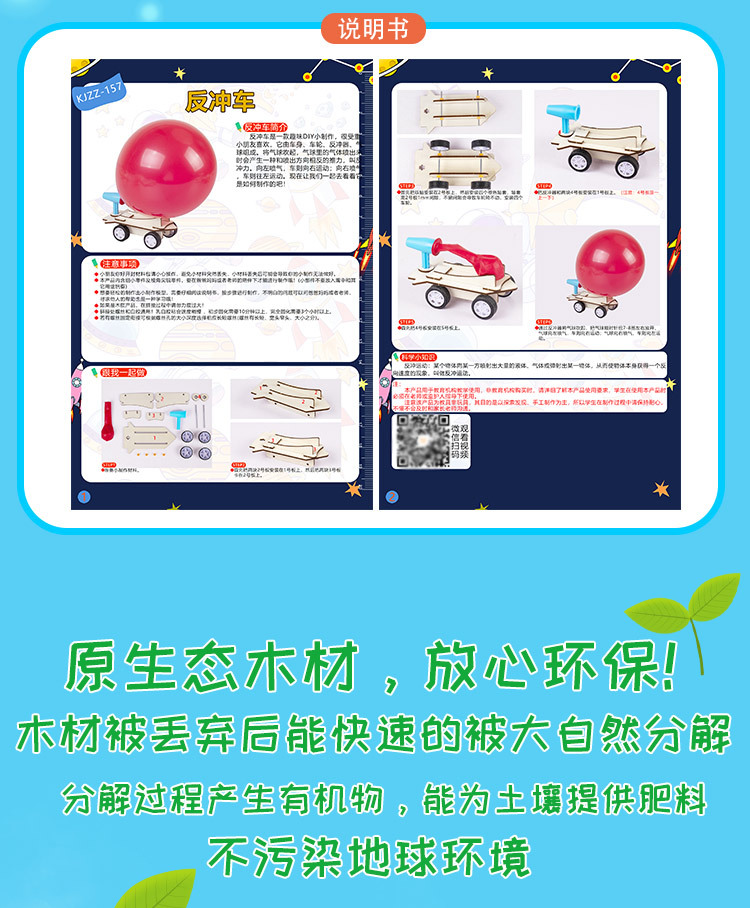 어린이 장난감 과학 수제 작은 발명 풍선 동력 자동차 과학 기술 소량 제작 DIY 반동 자동차 교육 완구스토어 가기