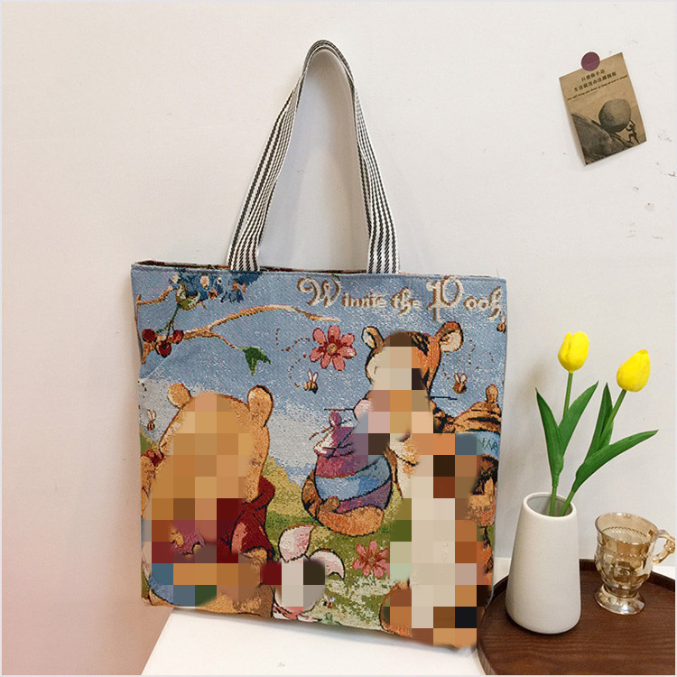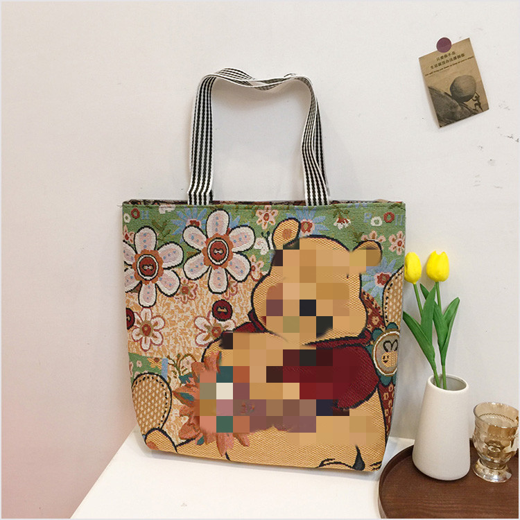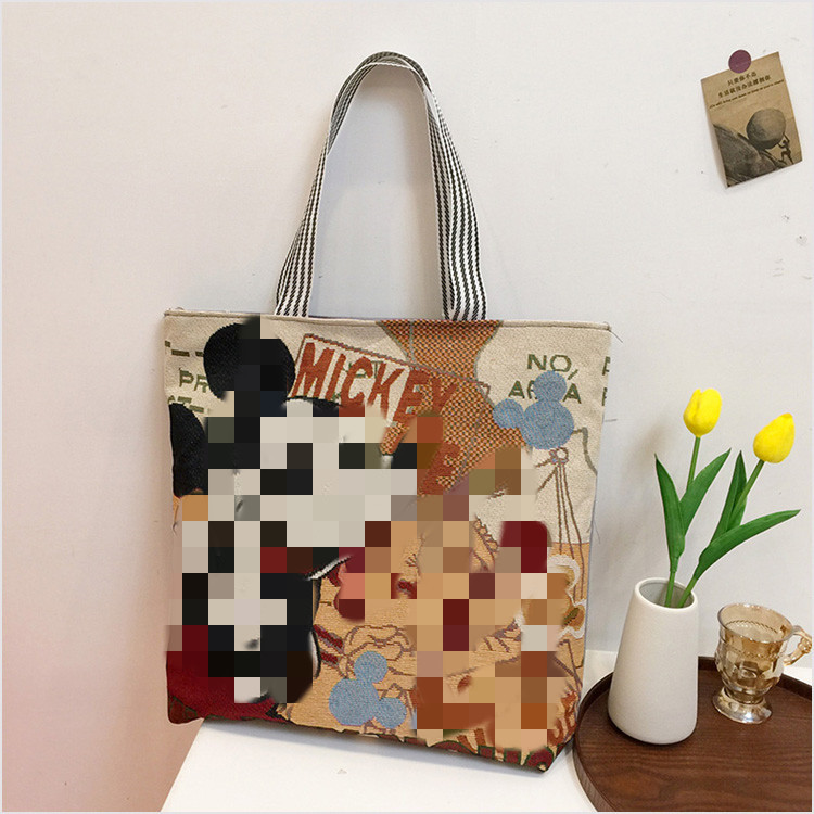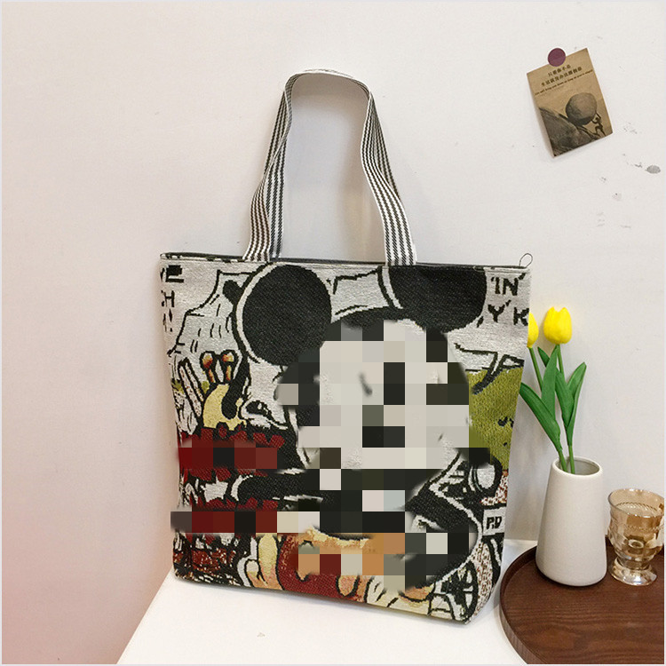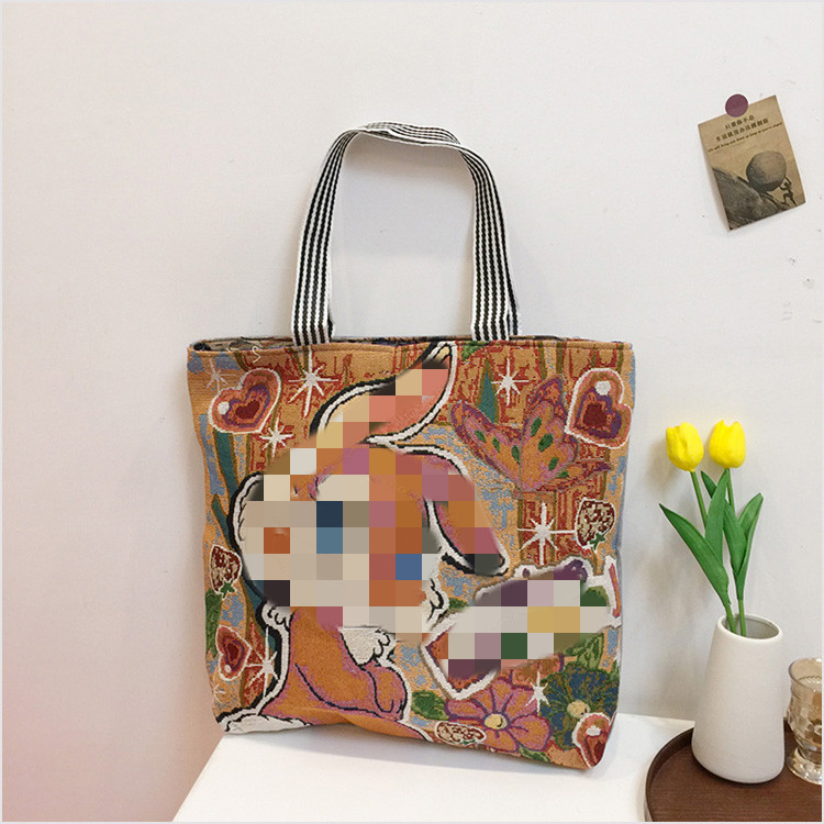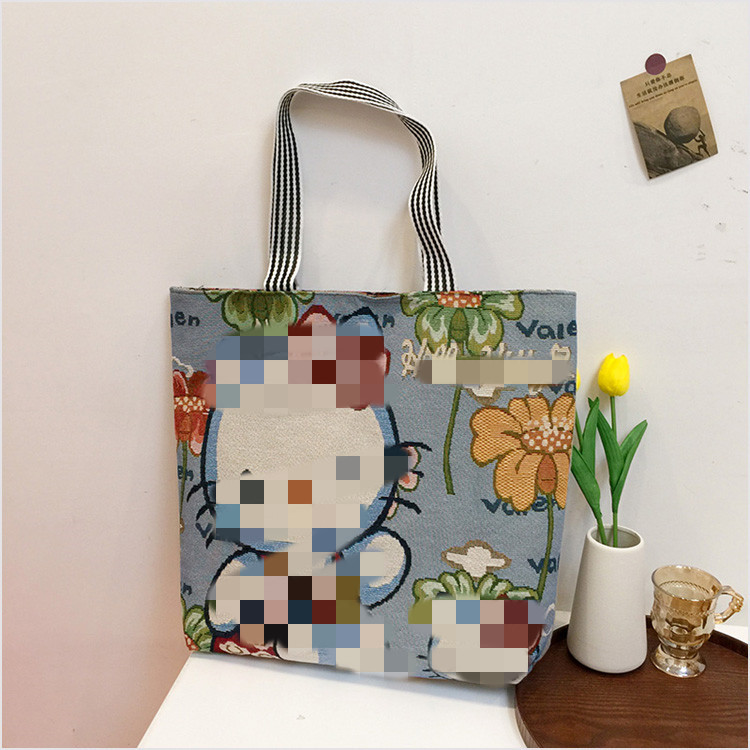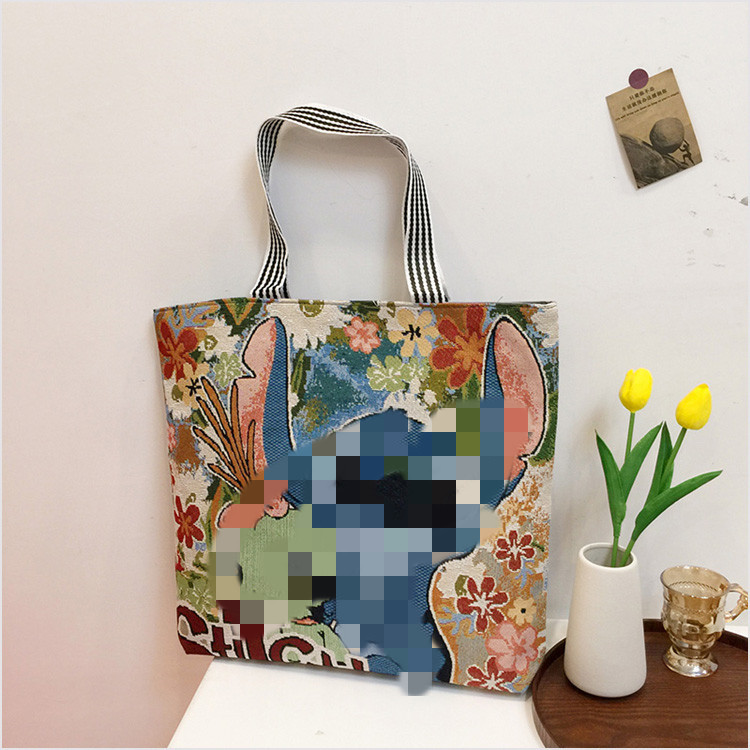 대외 무역 빈티지 자수 니트 천 가방 숄더백 여자 학교 가방 만화 가방 대용량 쇼핑백스토어 가기