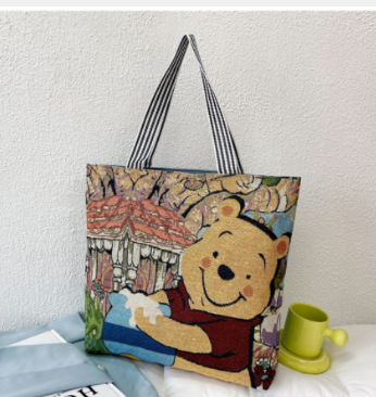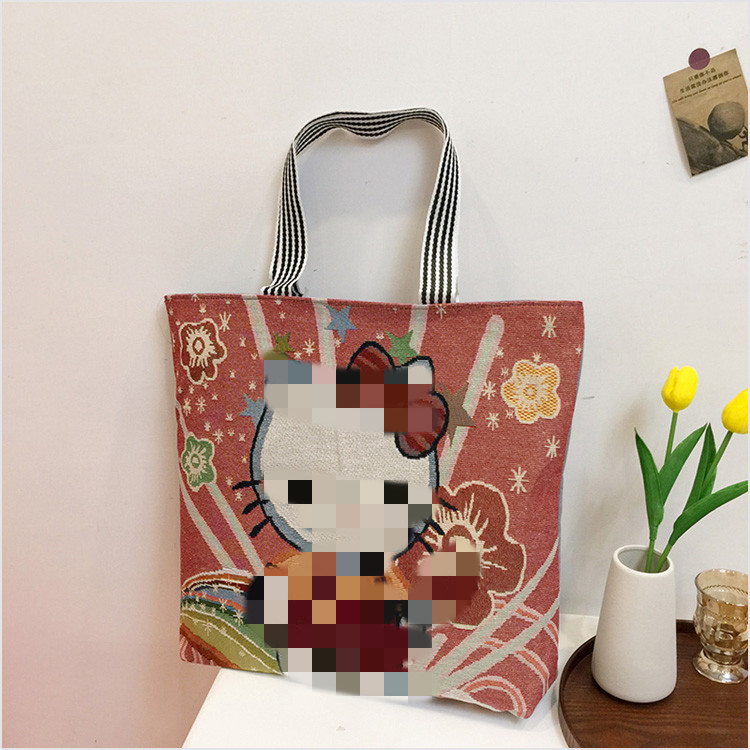 대외 무역 빈티지 자수 니트 천 가방 숄더백 여자 학교 가방 만화 가방 대용량 쇼핑백
