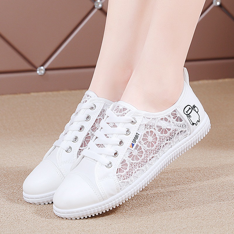 2022 봄과 여름 새로운 레이스 중공 메쉬 신발 여성용 작은 흰색 신발 통기성 플랫 신발 작은 흰색 신발 제조 업체 도매스토어 가기