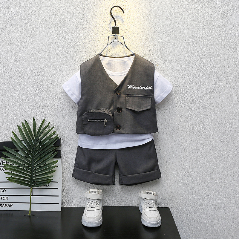소년 여름 세트 2022 새로운 어린이 유행 서양식 어린이 조끼 짧은 소매 3 피스 세트 아기 패션스토어 가기