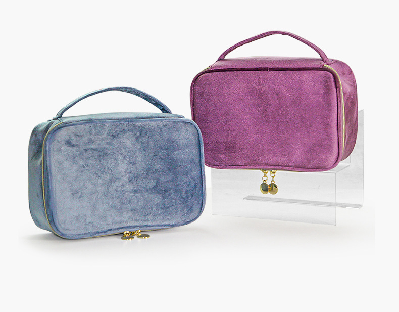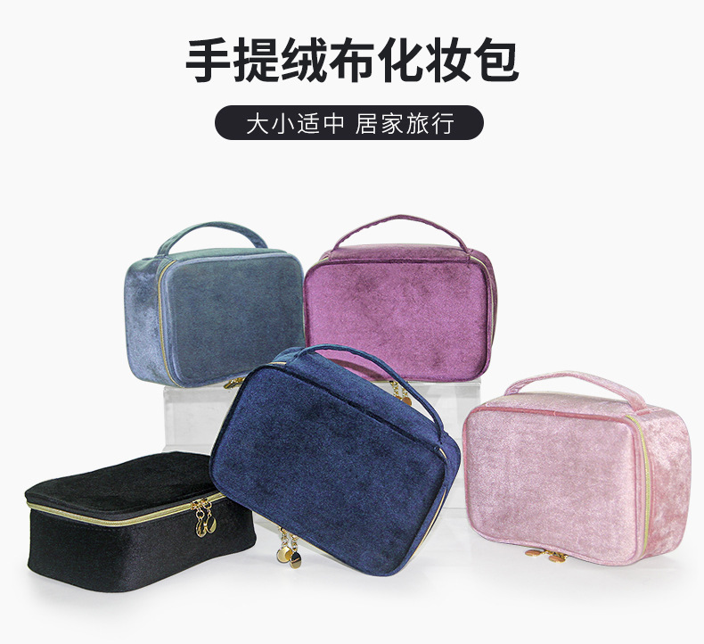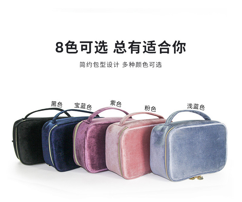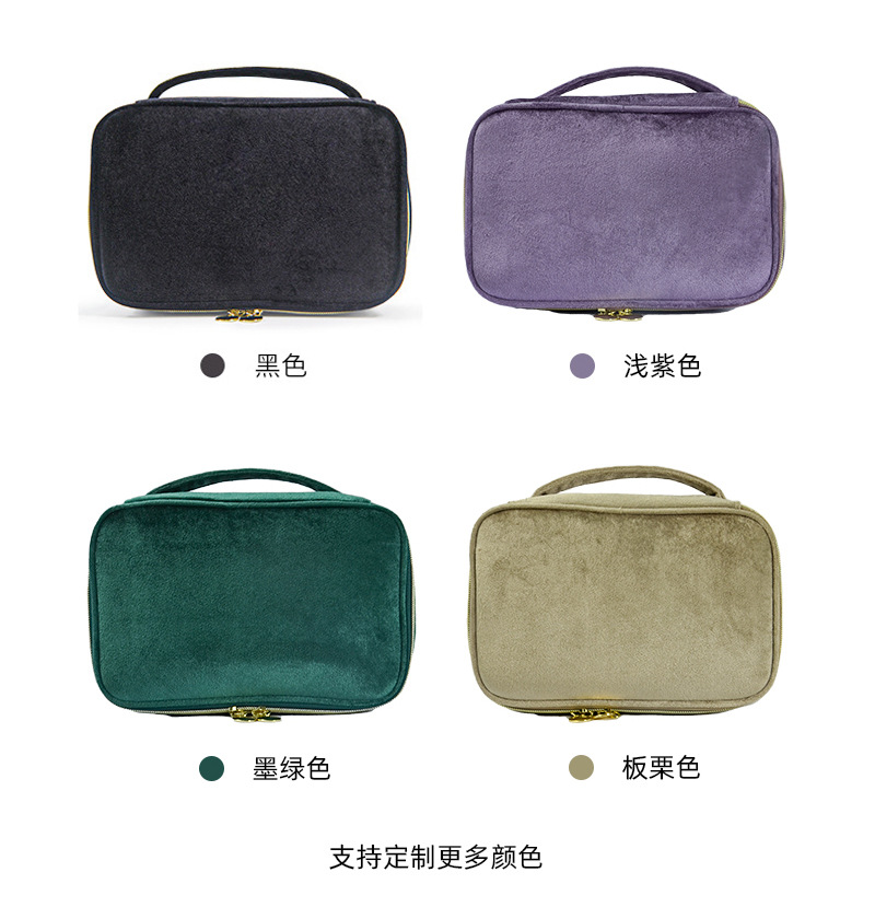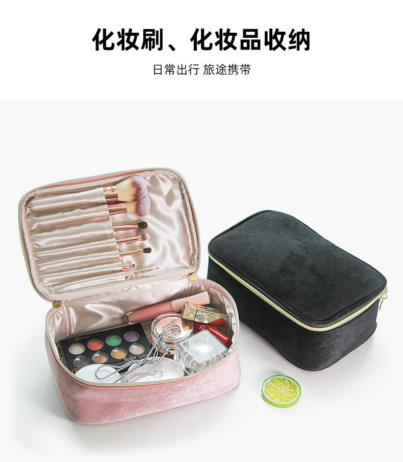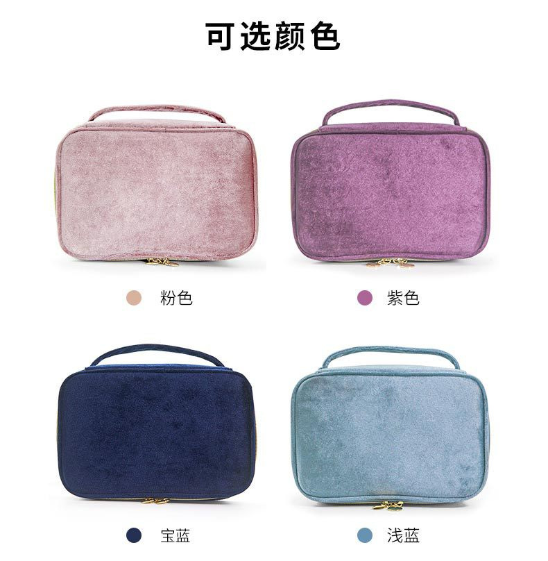 브러쉬 케이스가 포함된 크로스보더 벨벳 화장품 가방, 대용량 휴대용 벨벳 화장품 가방, 스킨케어 제품 보관 가방스토어 가기