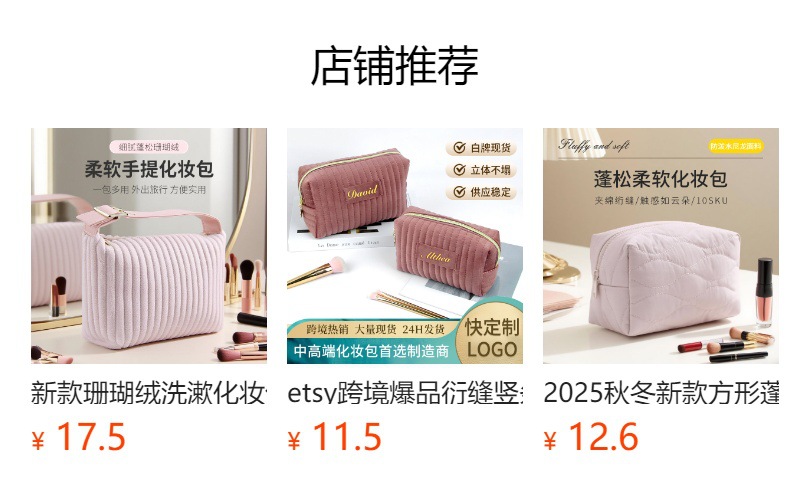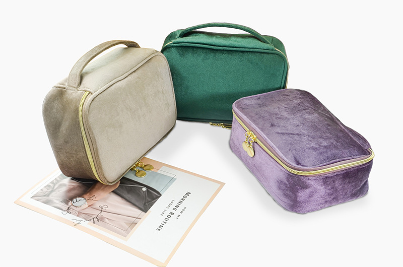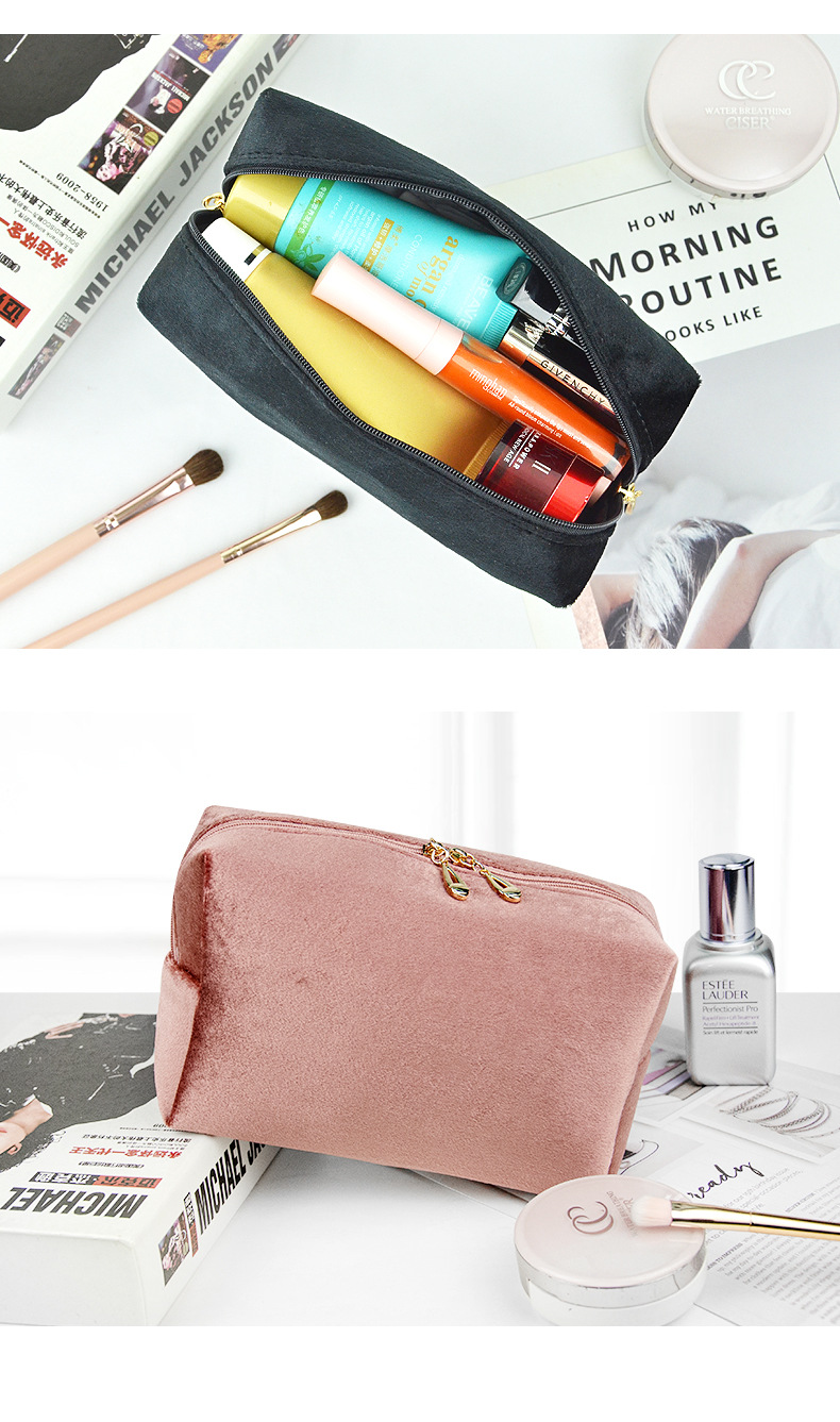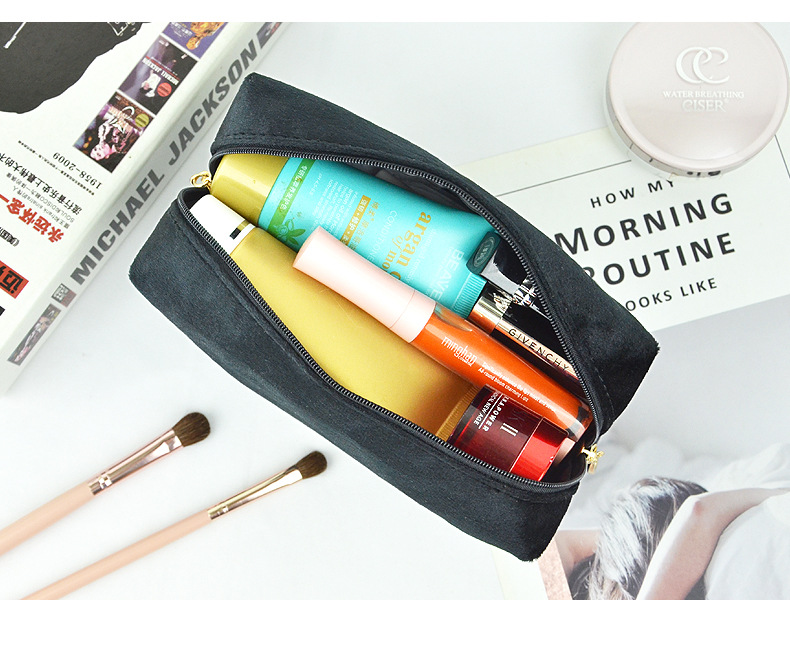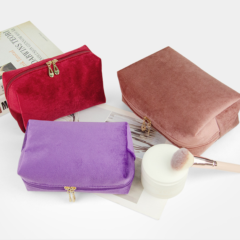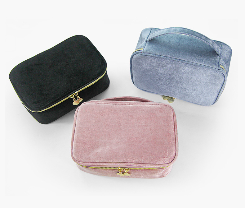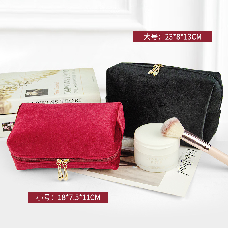 브러쉬 케이스가 포함된 크로스보더 벨벳 화장품 가방, 대용량 휴대용 벨벳 화장품 가방, 스킨케어 제품 보관 가방스토어 가기