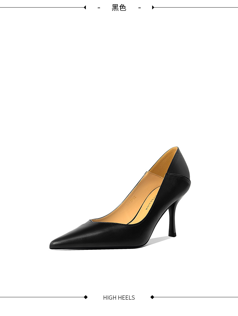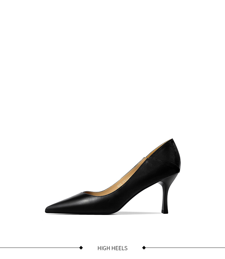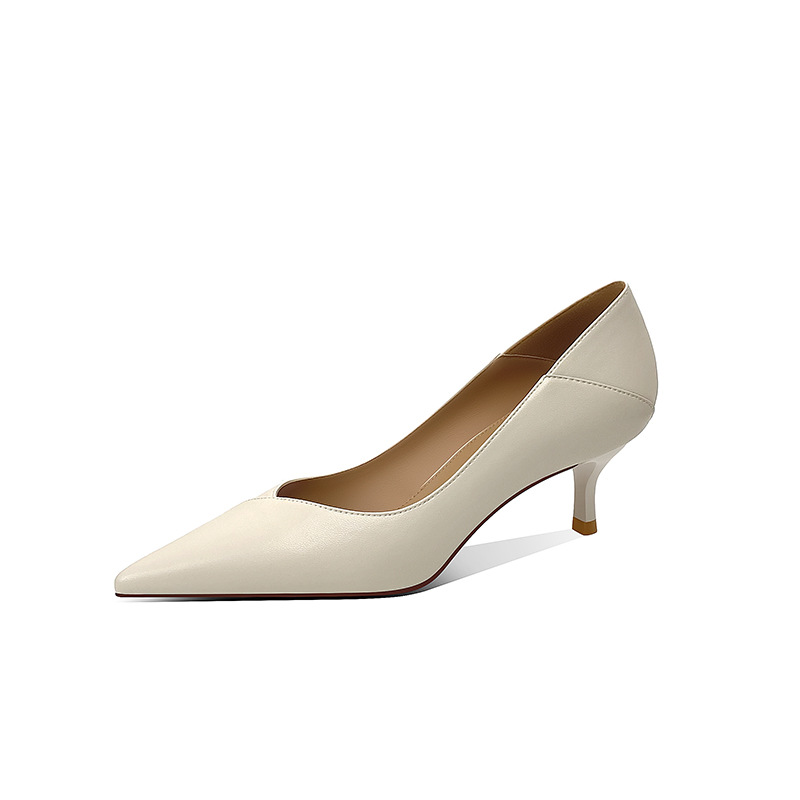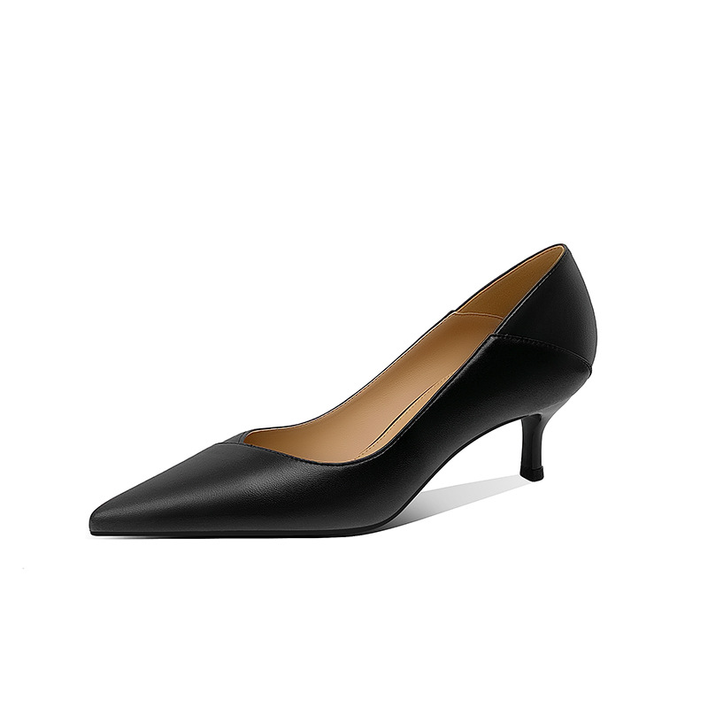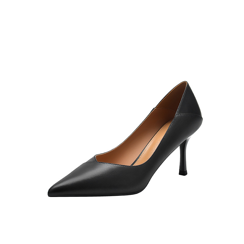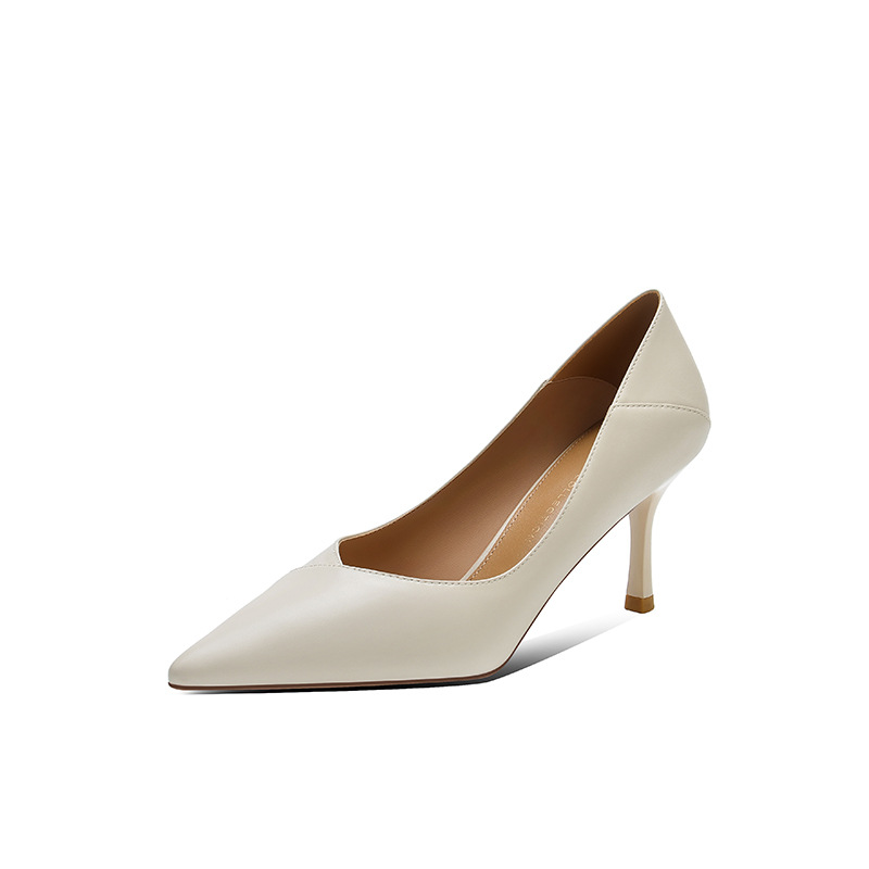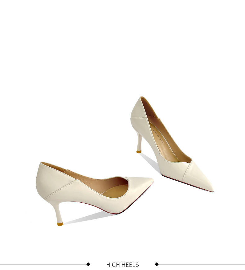 양가죽 하이힐 여성 스틸레토 힐 2025 봄 신상 한국 버전 살구색 싱글 슈즈 블랙 통근 작업화