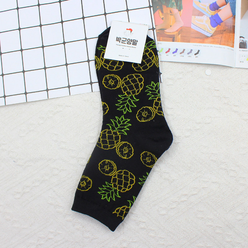 PGWC017 동대문 한국 봄 · 여름 새 풀 프린팅 낙서 과일 한국식 여성용 미드 송아지 양말