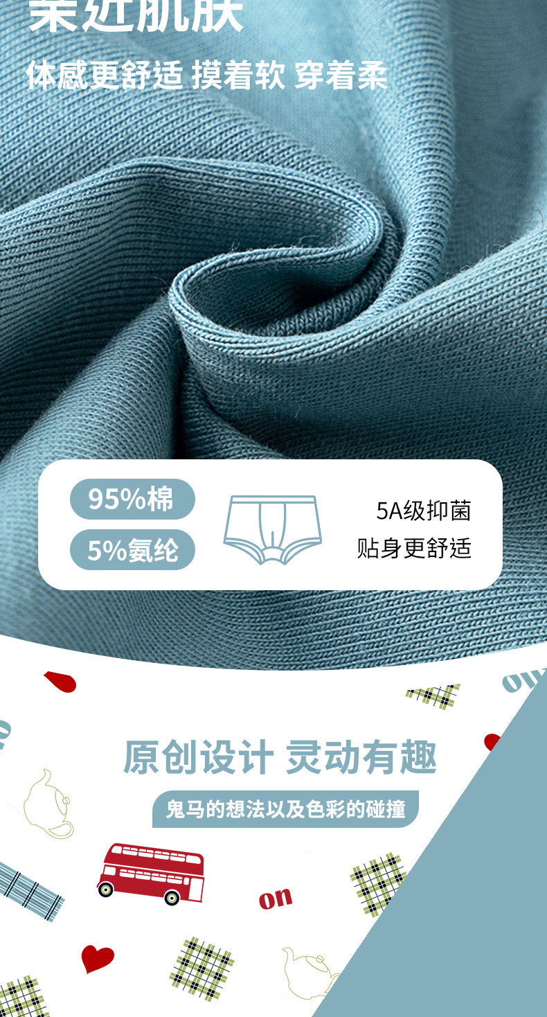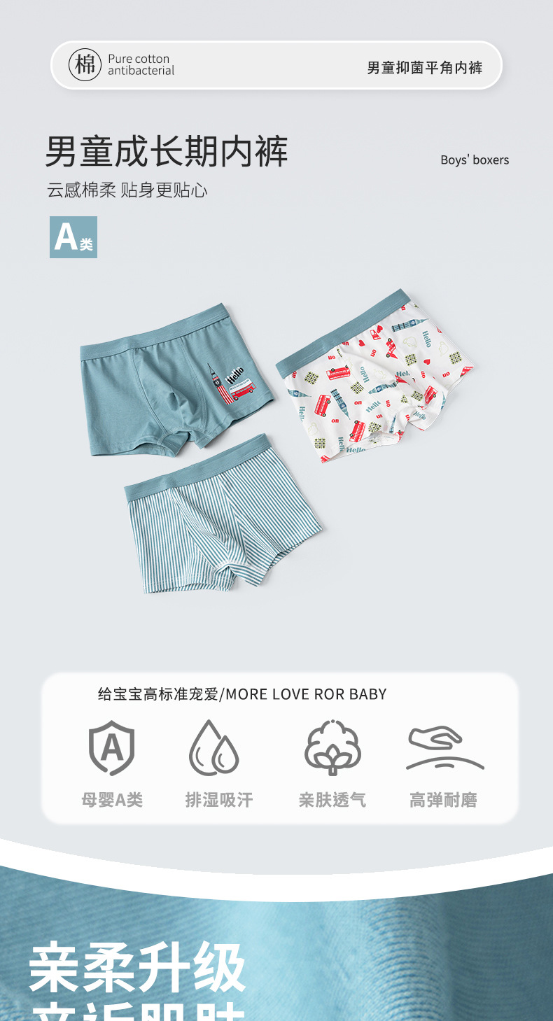 소년 복서 코튼 베이비 7A 항균 크로트 귀여운 만화 4 코너 소년 속옷 어린이 속옷