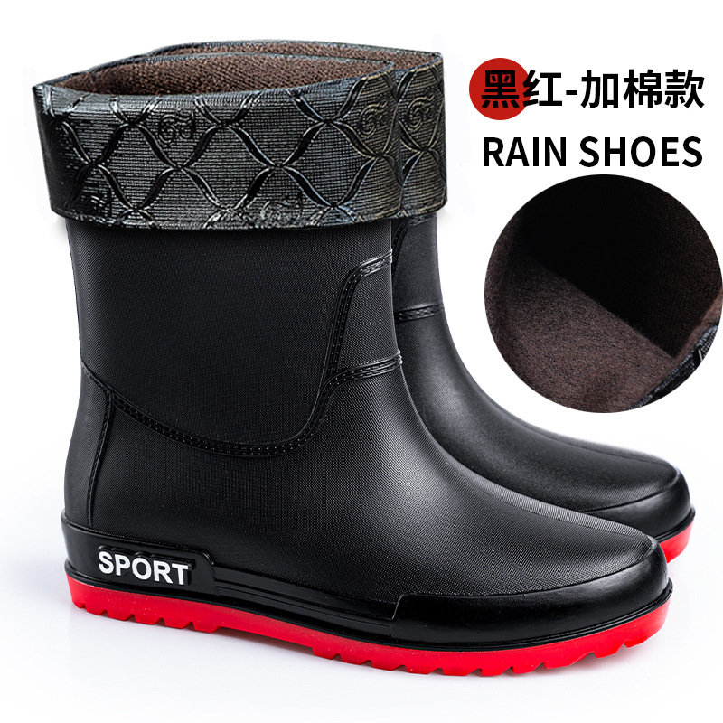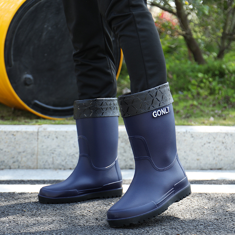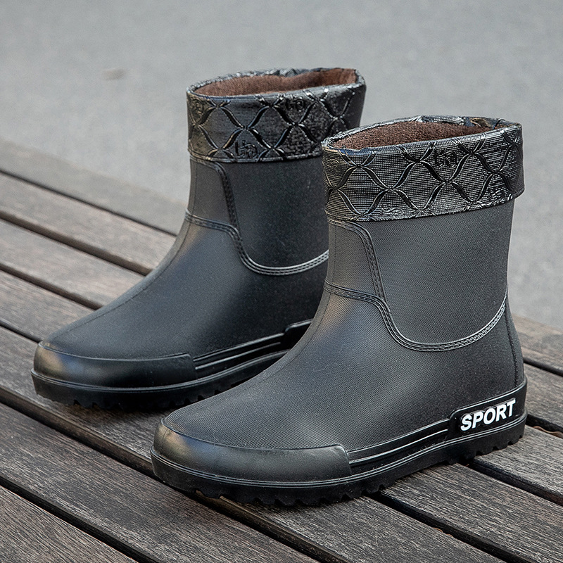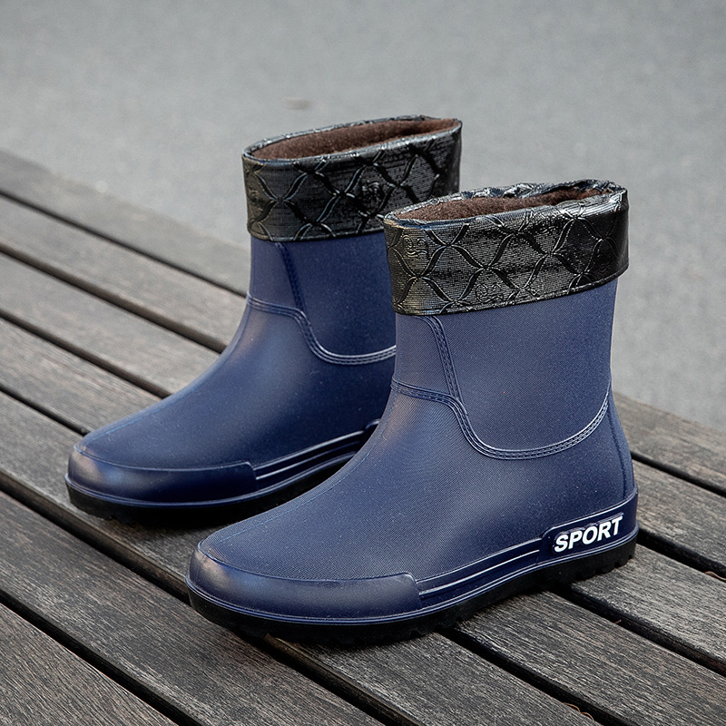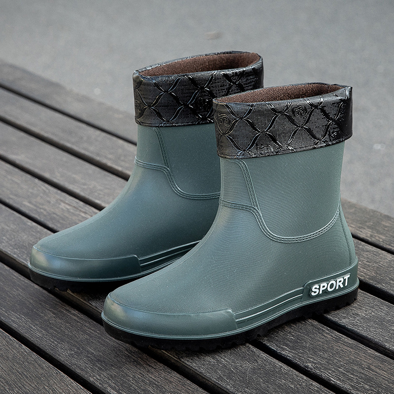 크로스 보더 패션 남성용 레인 부츠 미드 배럴 레인 부츠 커플 기모 고무 신발 주방 세차 낚시 작업 신발스토어 가기