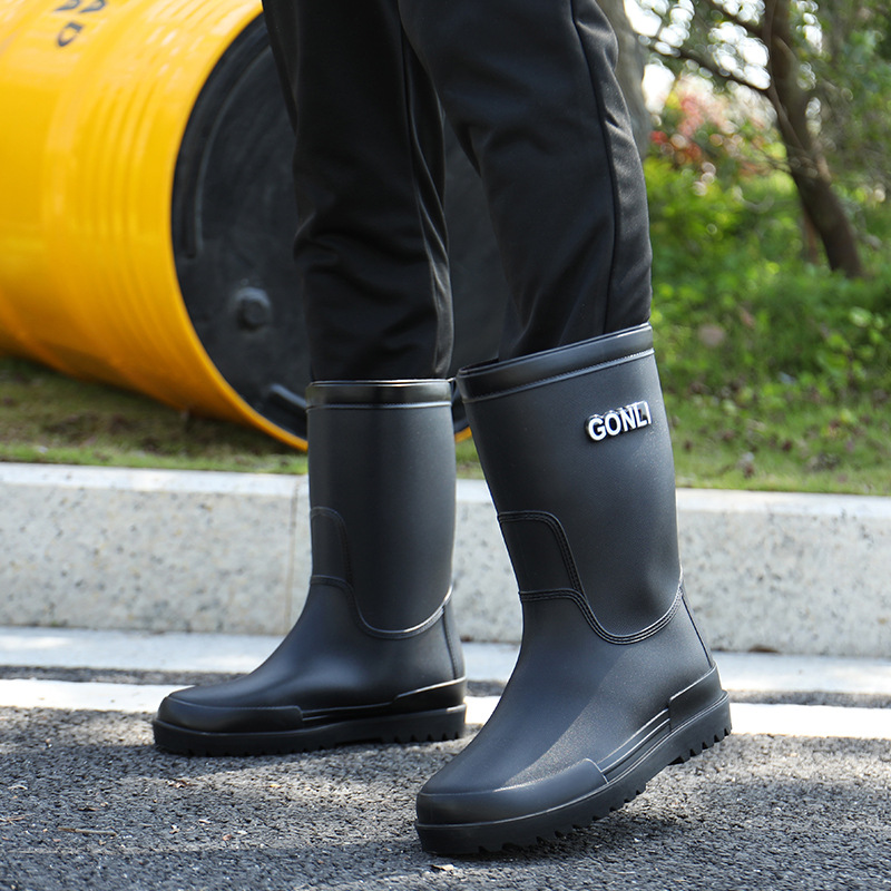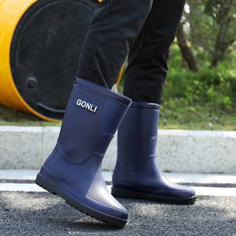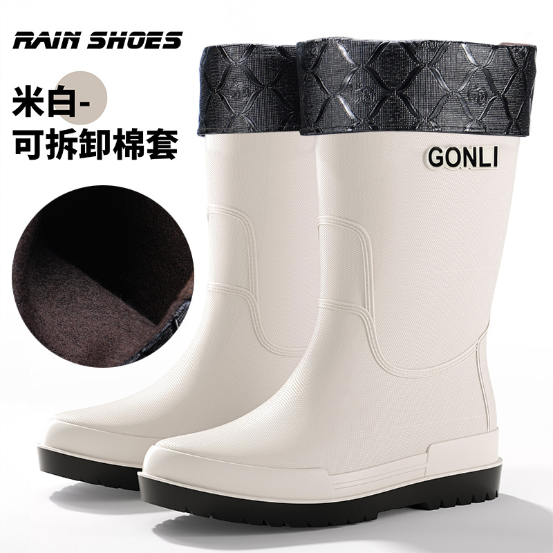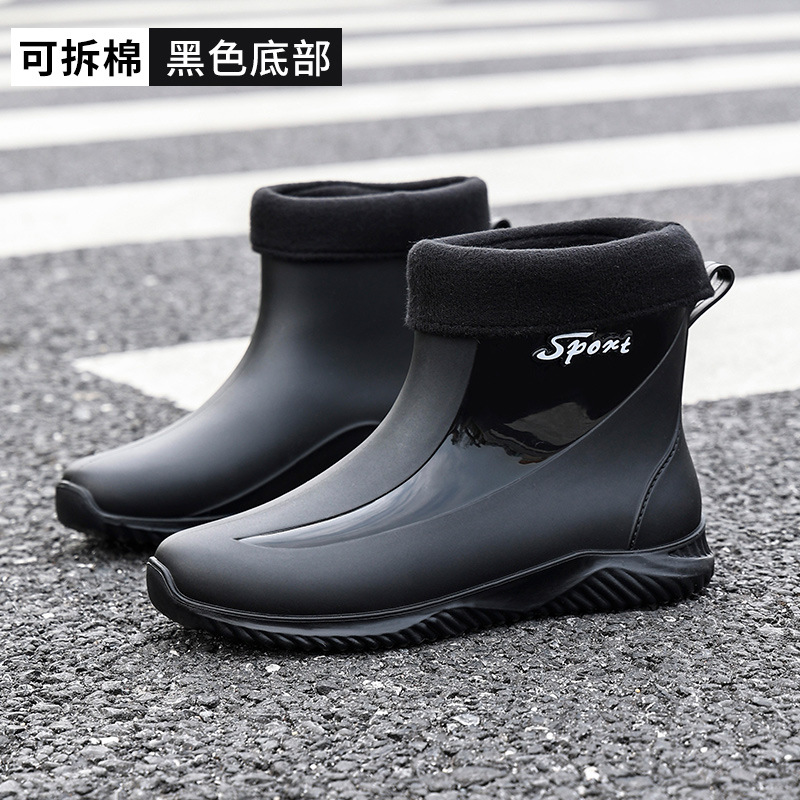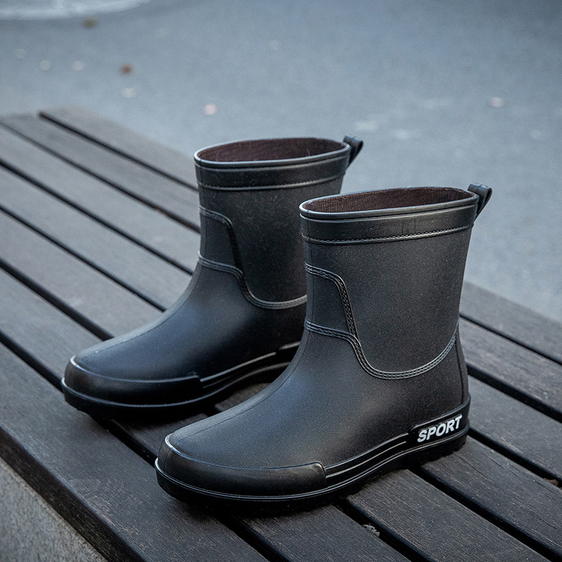 크로스 보더 패션 남성용 레인 부츠 미드 배럴 레인 부츠 커플 기모 고무 신발 주방 세차 낚시 작업 신발스토어 가기
