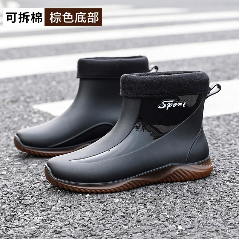 크로스 보더 패션 남성용 레인 부츠 미드 배럴 레인 부츠 커플 기모 고무 신발 주방 세차 낚시 작업 신발